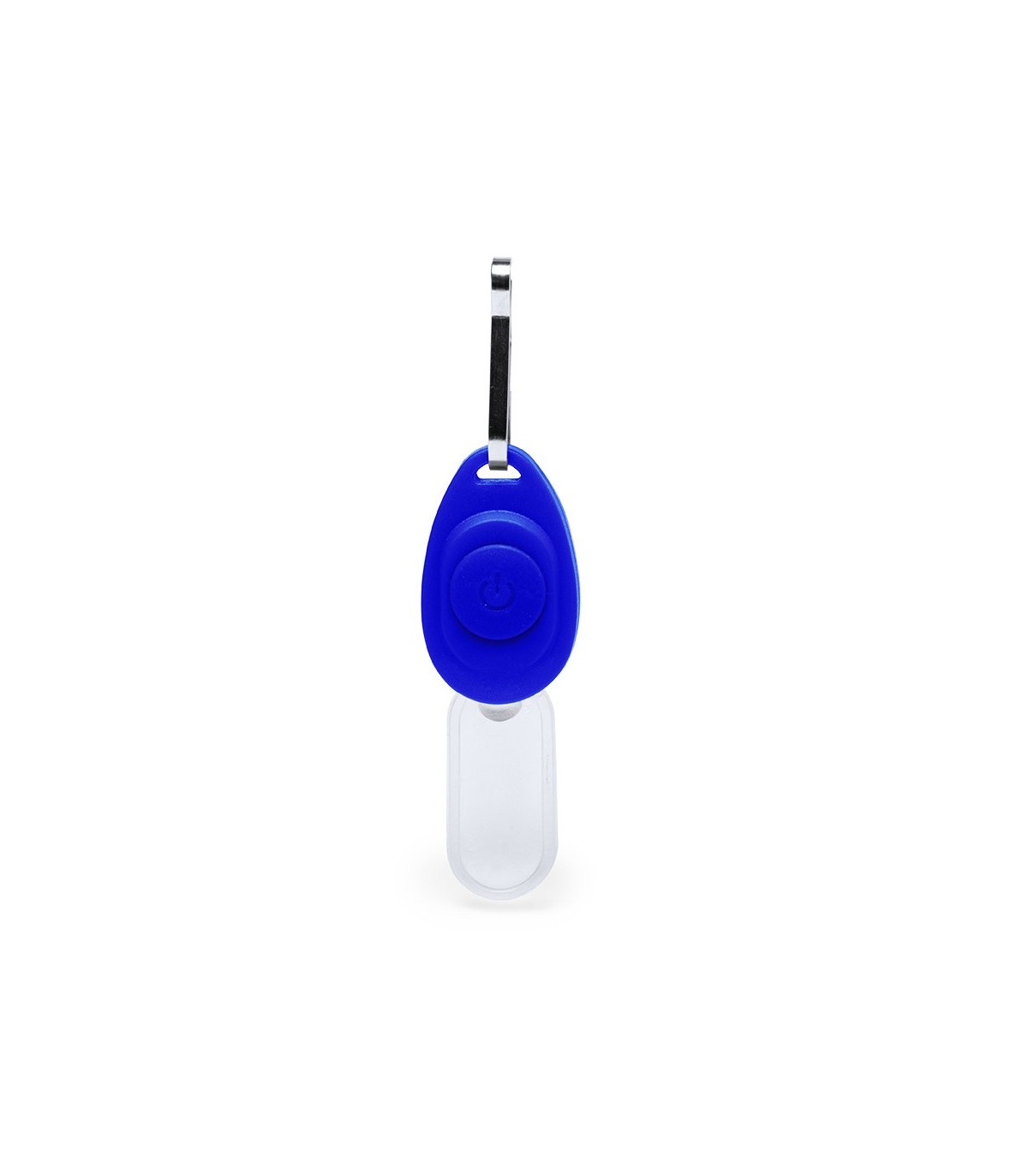 Luz de seguridad de línea deportiva con fijación especialmente diseñada para el tirador de la cremallera, Con luz led interior blanca de 2 posiciones de iluminación (fija e intermitente) y botón ON/OFF. Cuerpo en resistente ABS, con zona de iluminación en silicona y disponible en variada gama de colores. Alimentación a pilas (de botón incluidas).