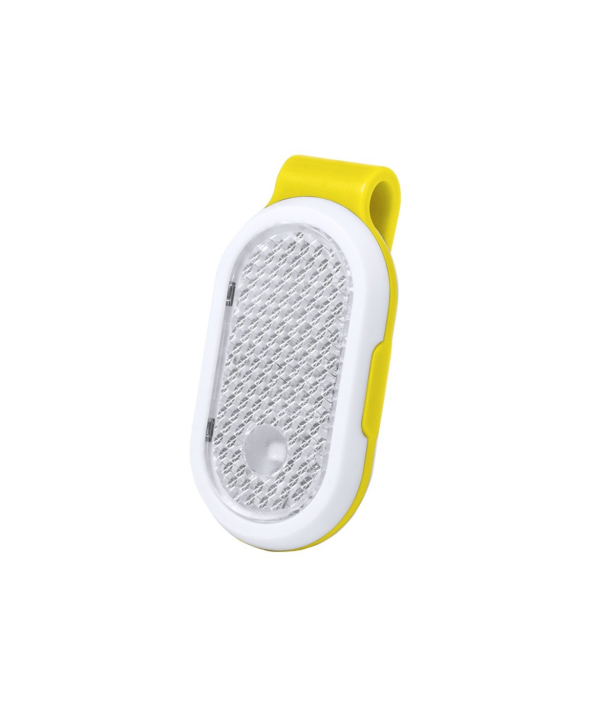 Pinza reflectante con 2 ledes y 2 posiciones de iluminación. En variedad de colores llamativos para personalizar y especialmente diseñada para actividades deportivas y de ocio. Pilas de botón incluidas.