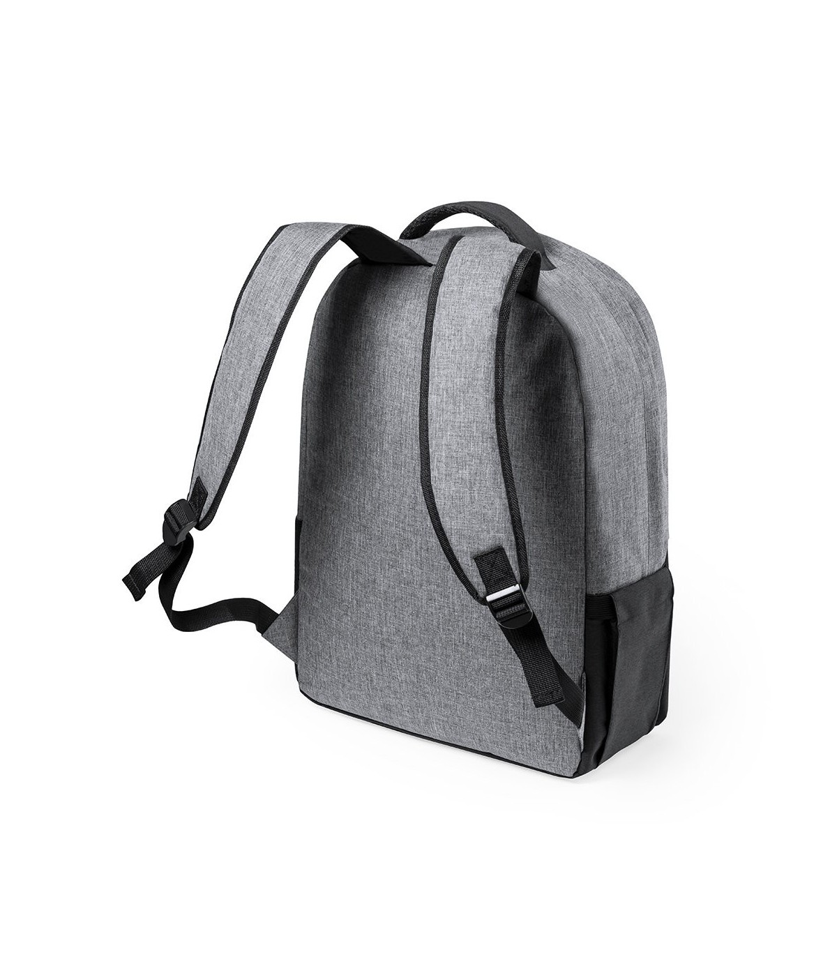Mochila en resistente poliéster 600D RPET, elaborado a partir de plástico reciclado para así fomentar la reutilización de residuos plásticos y contribuir a la sostenibilidad del planeta. En elegante acabado bicolor, incluye etiqueta exterior con distintivo RPET. Bolsillo principal con compartimentos acolchados para ordenador portátil de hasta 15 pulgadas y tablet de hasta 10 pulgadas. Espalda y cintas acolchadas.