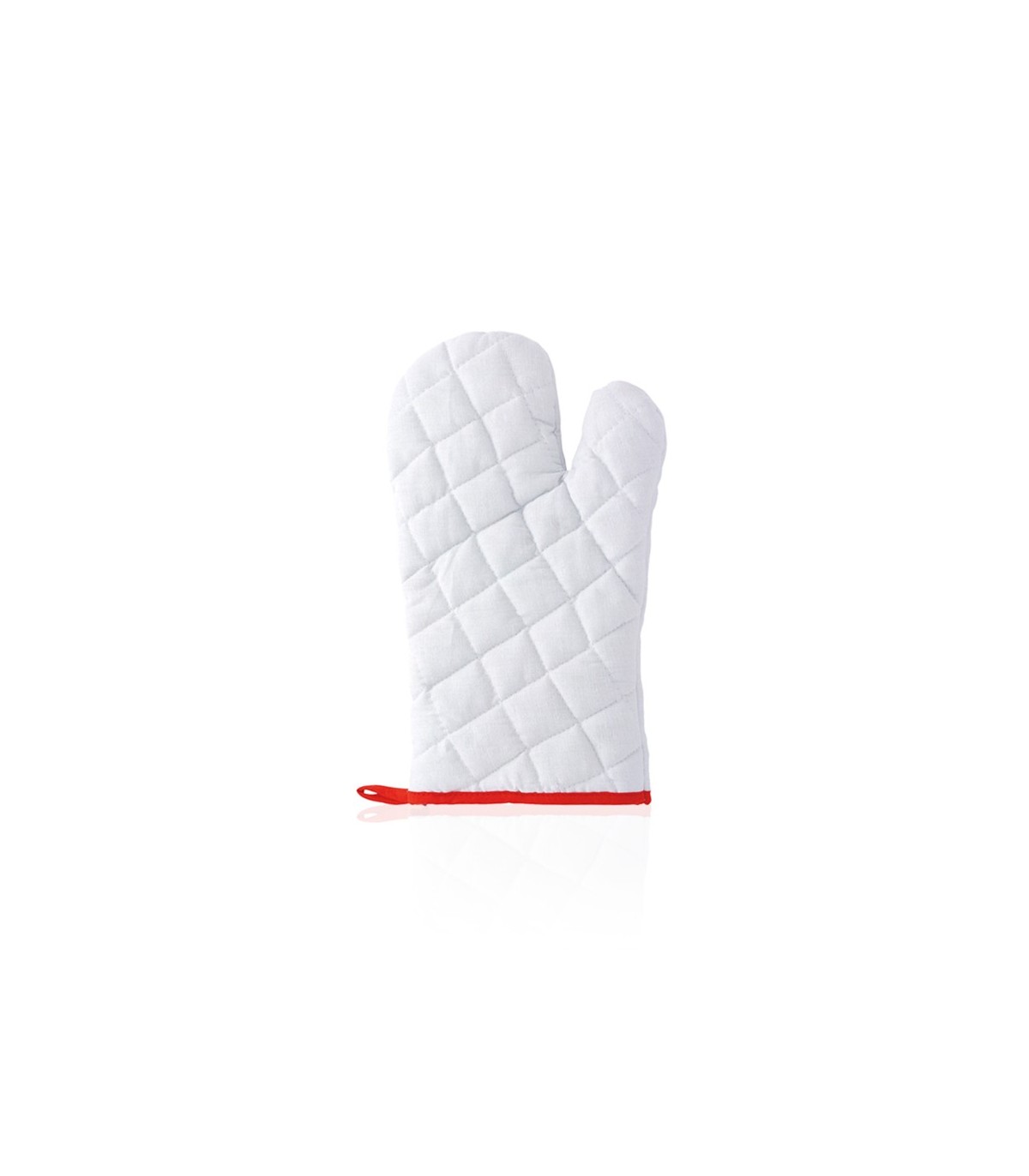 Manopla de cocina de alta calidad en suave material 100% algodón de vivos colores. Con una cara lisa especialmente diseñada para impresión y cinta para colgar.