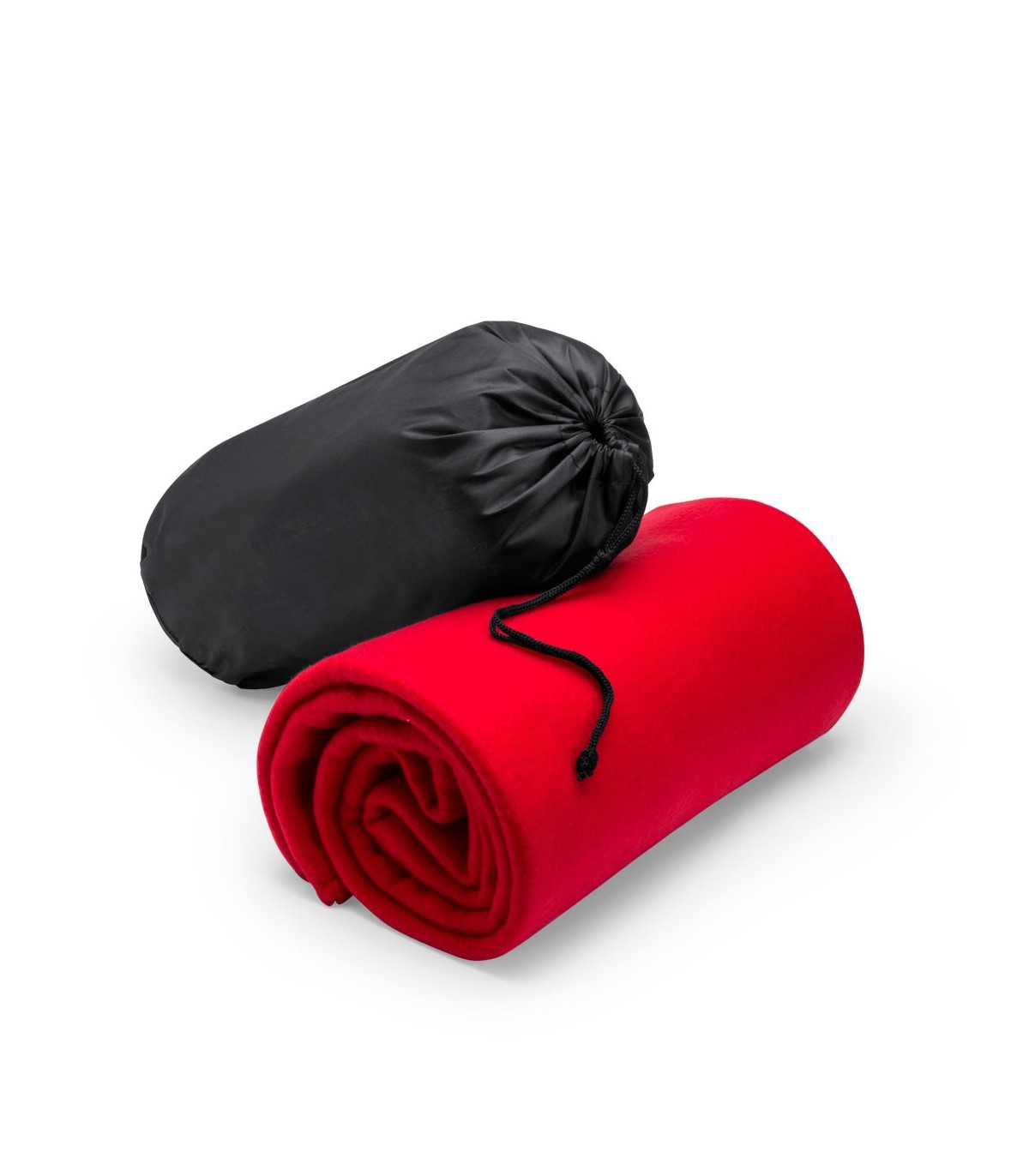 Mantas personalizadas con logo de empresa en vivos colores. En material polar fleece de 180g/m2 y con funda de cierre de cordón en suave poliéster.