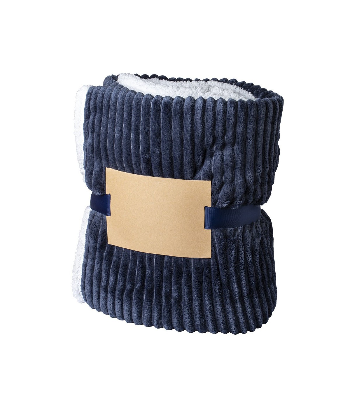 Suave y cálida manta en combinación de materiales coral fleece y sherpa de 440g/m2. En elegante diseño bicolor, tamaño 125x160cm. Presentación individual con cinta a juego y lámina de cartón reciclado para fácil impresión.