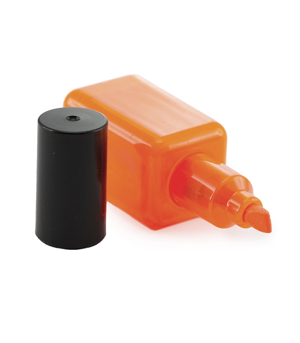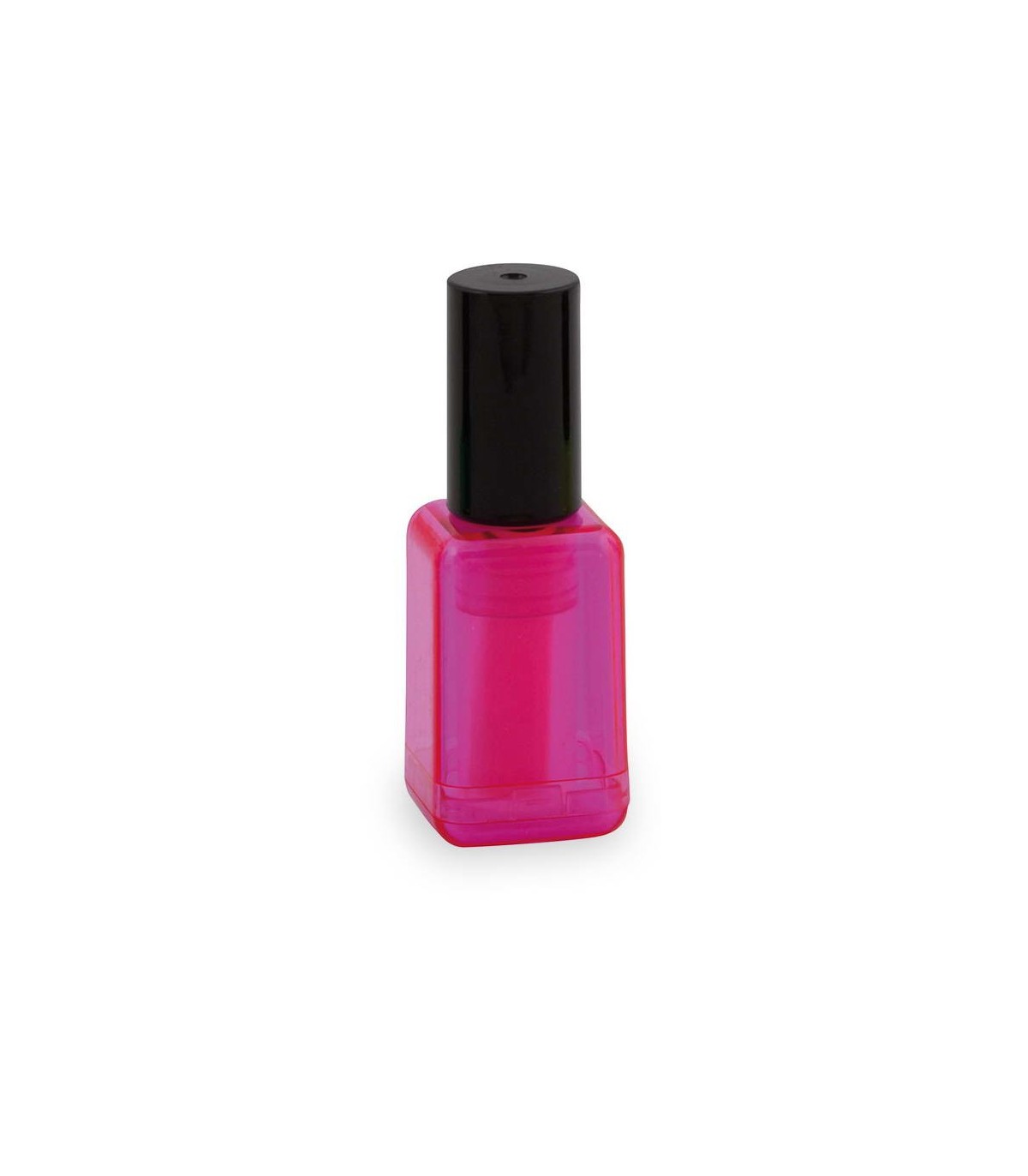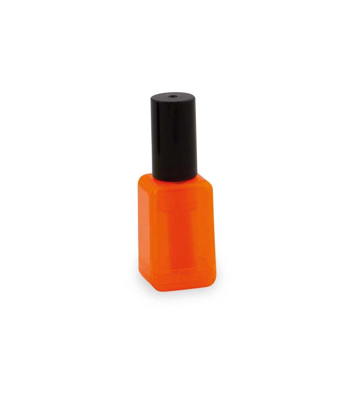 Divertido marcador fluorescente en forma de bote de esmalte para uñas. De cuerpo translúcido en suave acabado con marcador a juego.
