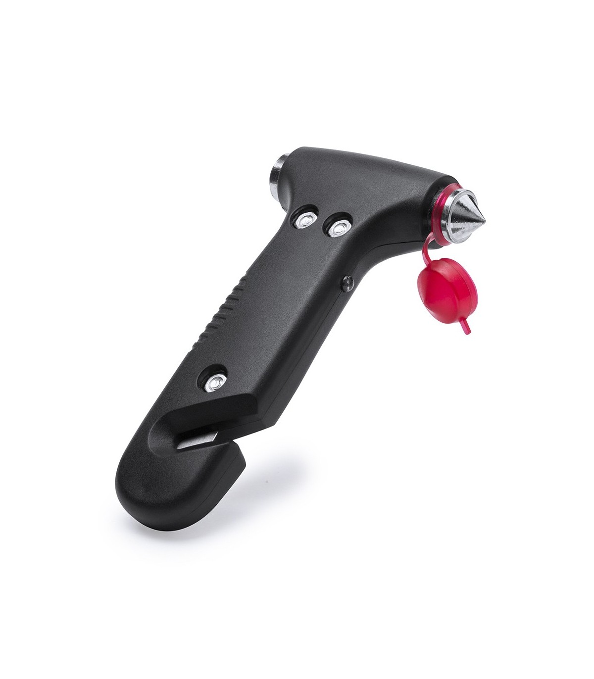 Martillo led de emergencia multifunción cuchilla corta cinturones, linterna led de luz blanca y martillo rompecristales, practicas para regalos personalizados de empresas.