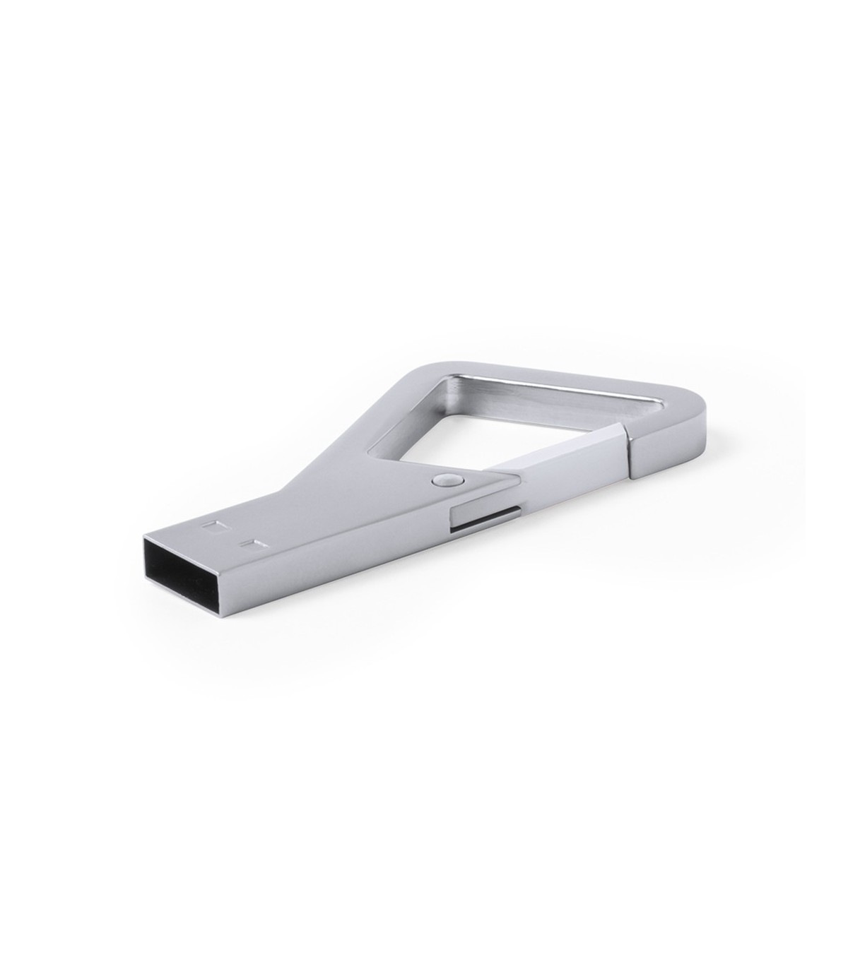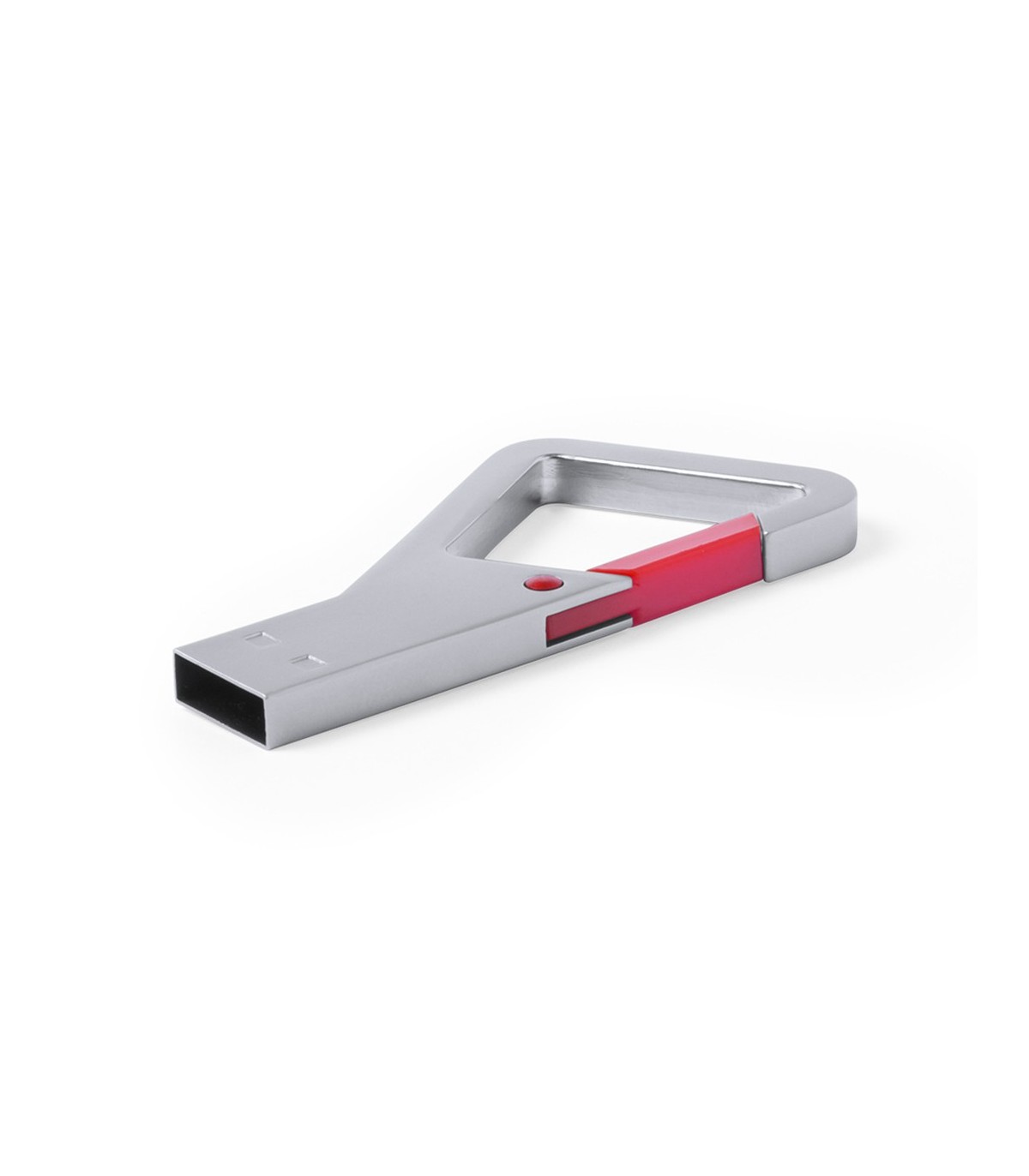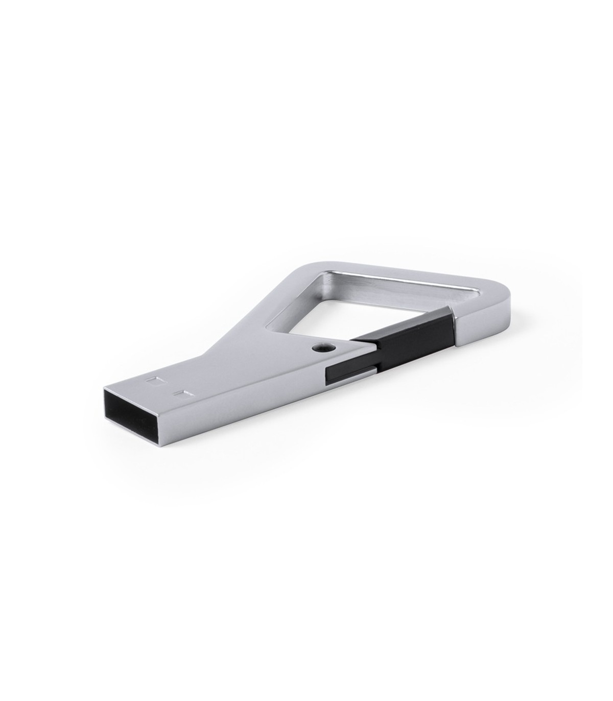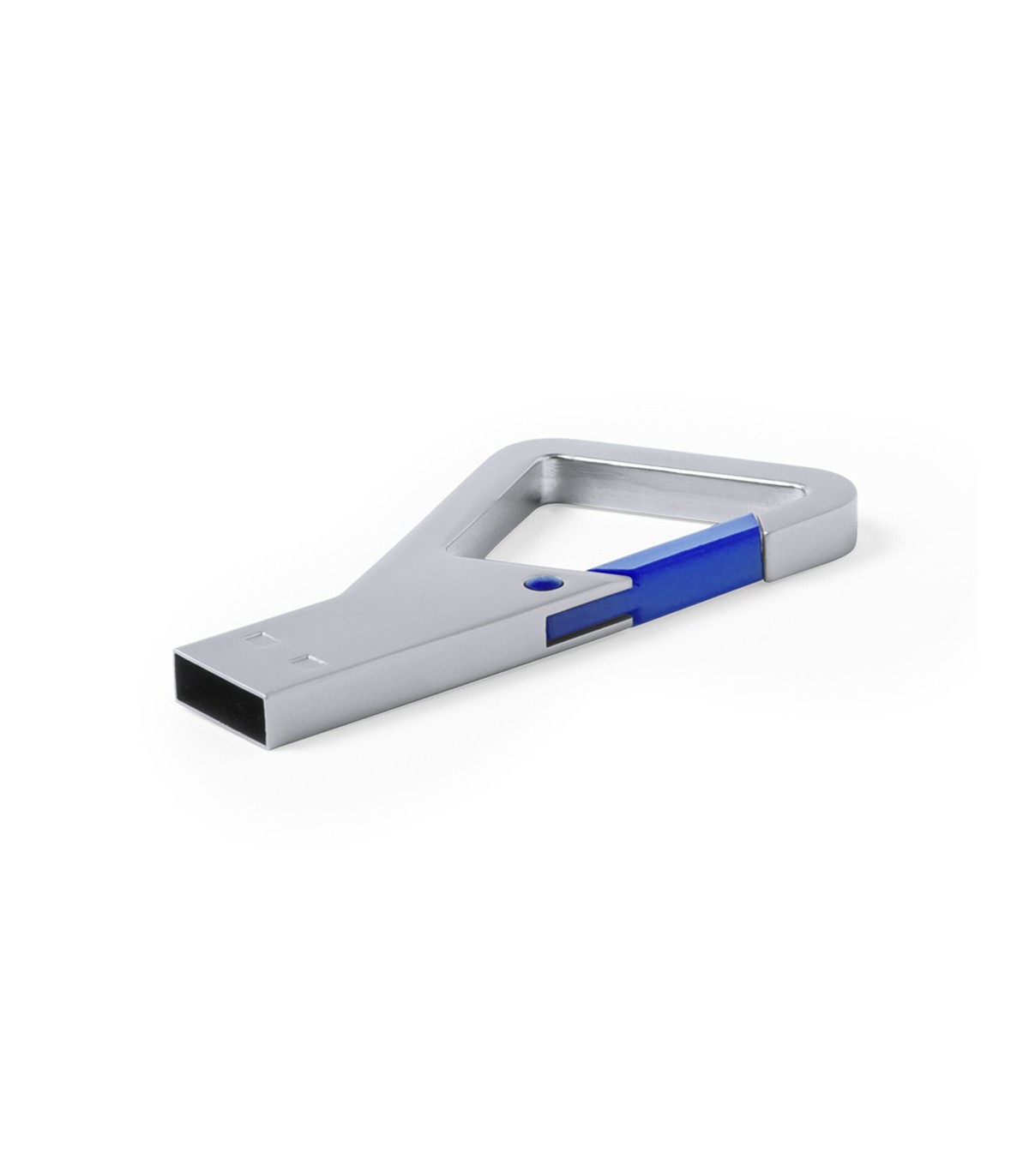 Memoria USB de 8GB de capacidad de acabado metálico y con original diseño de mosquetón con cierre en variada gama de colores. Presentada en estuche metálico individual con ventana e interior troquelado en suave espuma.