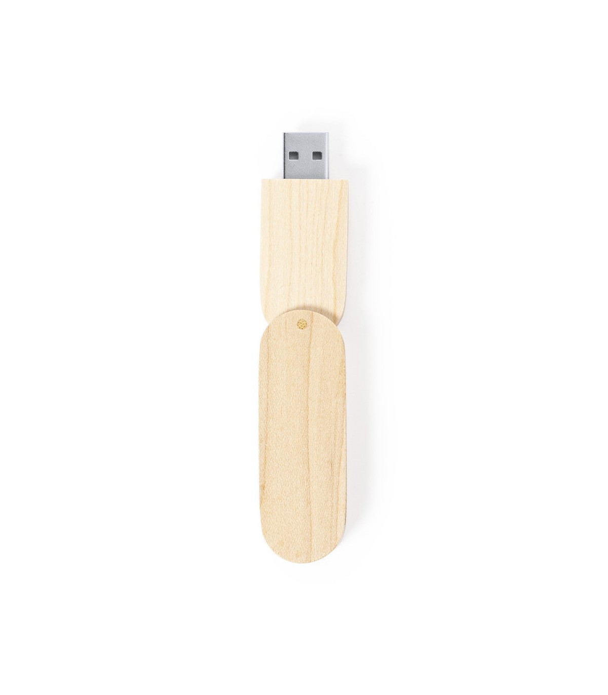 Memoria USB de elaboración ecológica plegable, de 16GB de capacidad. Fabricada en madera, para así fomentar la utilización de materiales naturales. Presentada en atractiva caja de diseño eco.