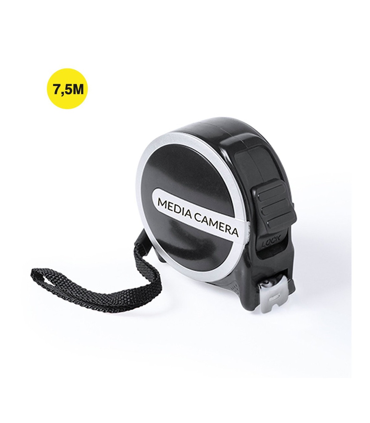 Flexómetro de 7,5 metros con cuchilla metálica y mecanismo de bloqueo. Con cuerpo de suave acabado especialmente diseñado para marcaje en tampografía. Con clip metálico para cinturón y cinta de transporte. Presentado en caja individual.