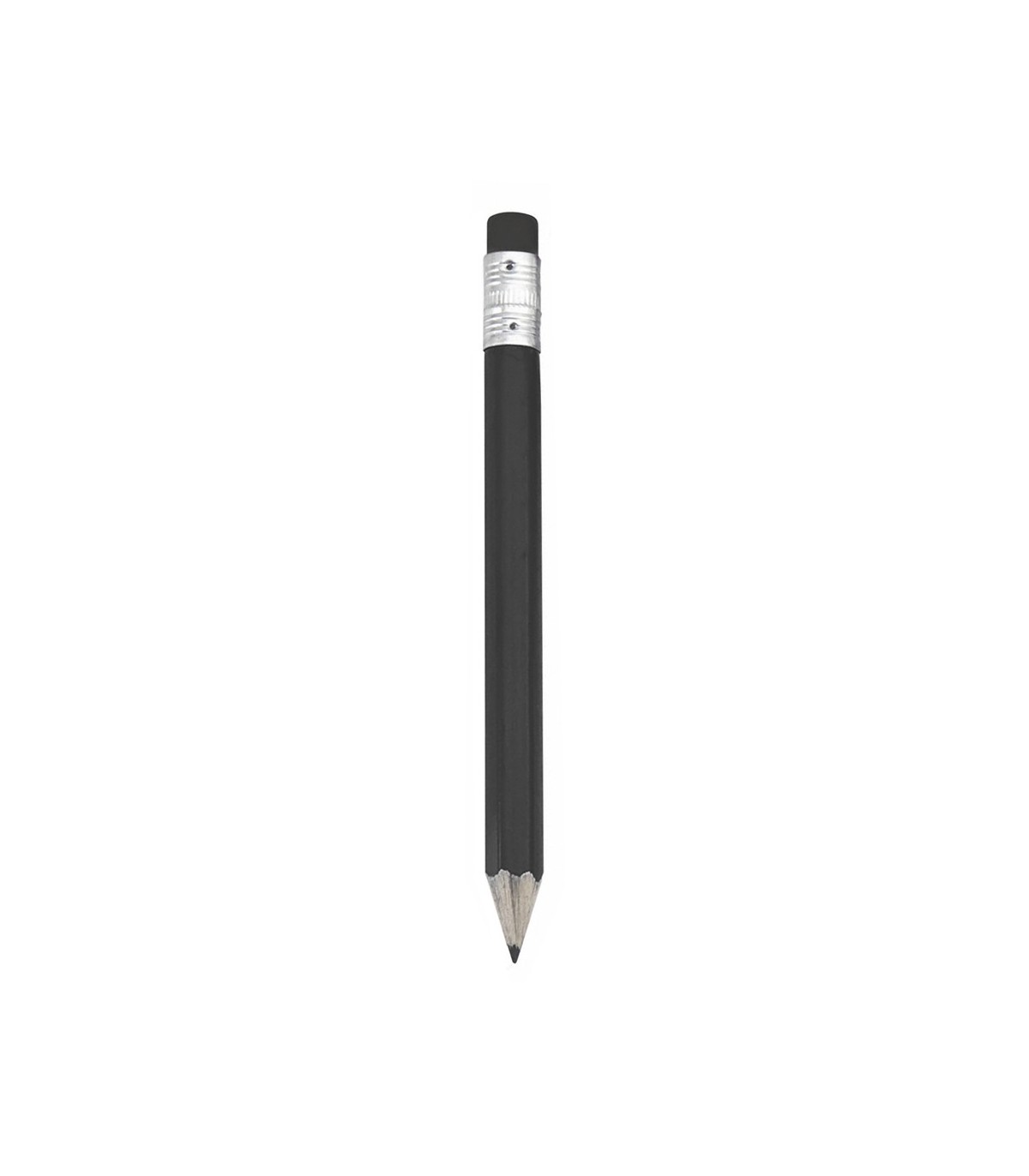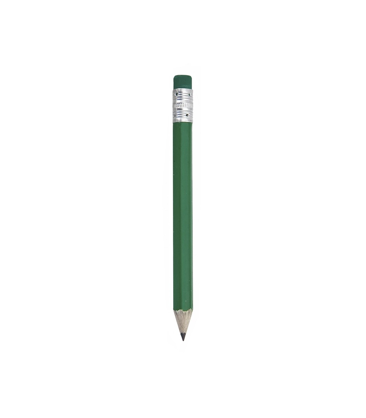 Minilápiz de madera con cuerpo hexagonal en brillantes colores y con goma de borrar a juego. Punta afilada.
