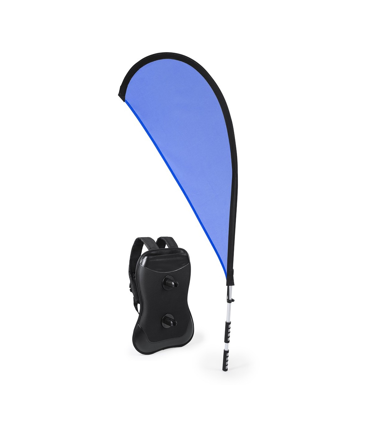 Mochila portabandera con asas y espalda acolchadas. Incluye bandera con superficie gráfica de 55x115cm reforzada y mástil flexible en fibra de vidrio. bandera de recambio Ref. 5461.