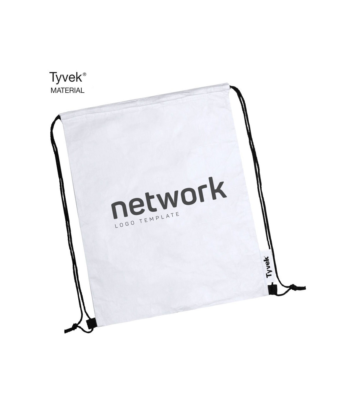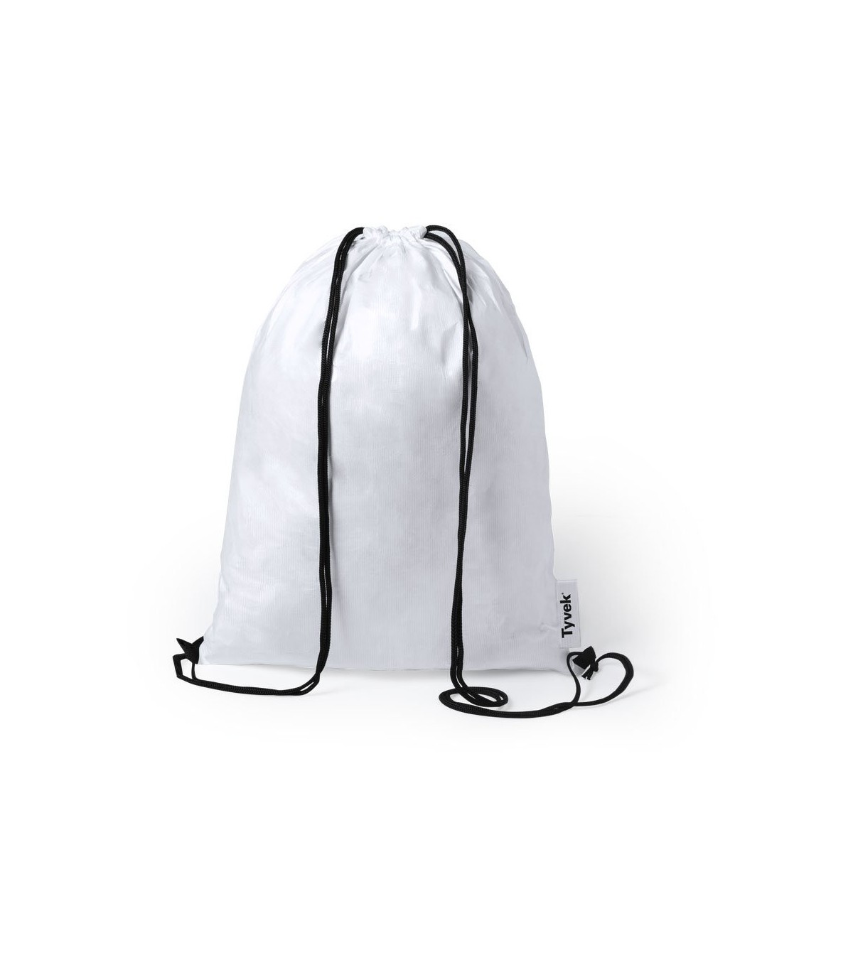 Mochila de cuerdas en Tyvek®, 100% reciclable de fibras de polietileno, Con cuerdas autocierre en color negro y esquinas reforzadas. Con distintivo Tyvek® en etiqueta lateral.
