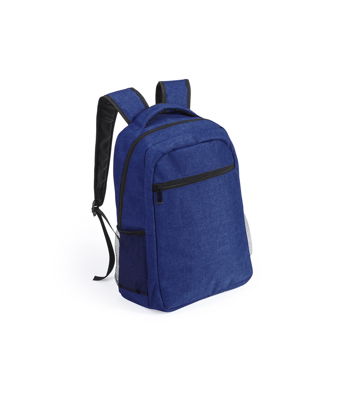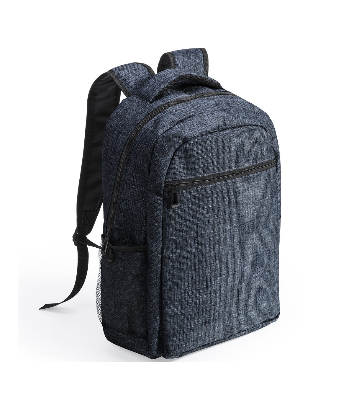 Mochila en acabado denim 600D, de diseño urbano, con acolchado total en todo el cuerpo y cintas de hombros. Bolsillo exterior con cierre de cremallera, asas de transporte y cintas de hombros reforzadas a juego y compartimento interior acolchado para portátil de hasta 15 pulgadas.
