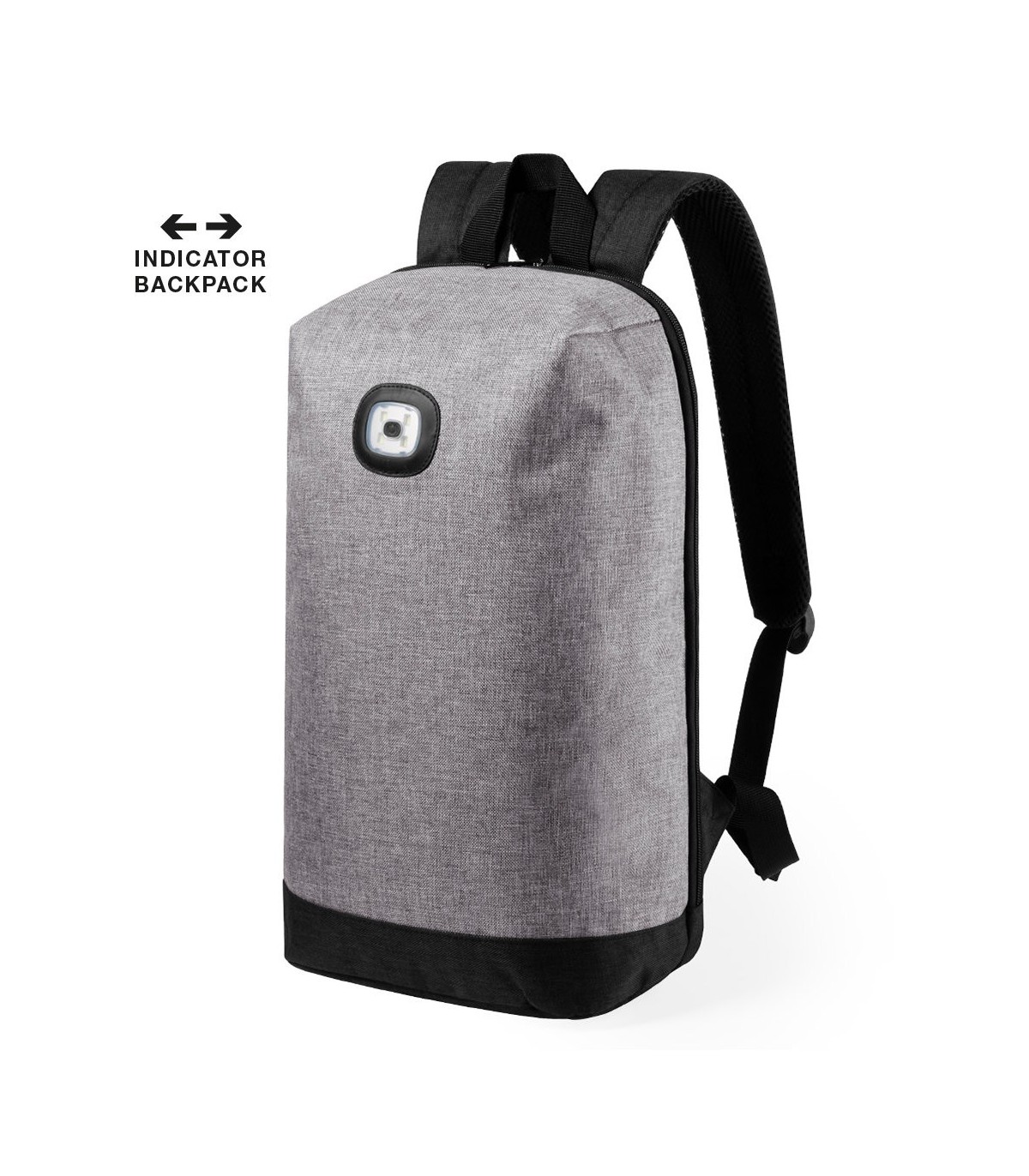 Mochila con indicadores luminosos multiusos, en resistente poliéster 600D de acabado bicolor. De diseño urbano, incluye luces parpadeantes y fijas, con 3 tipos de iluminación. Compartimento principal con cierre de cremallera de doble tirador, con cintas de hombros y espalda acolchadas y cintas de ajuste regulables. Alimentación a pilas (de botón incluidas).