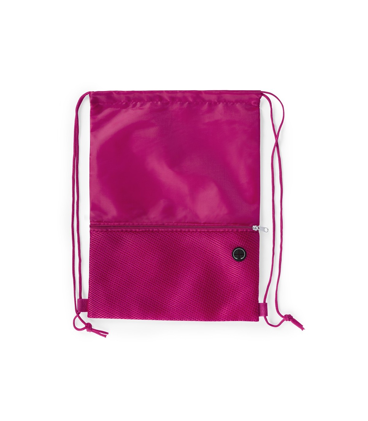 Mochila de cuerdas en suave poliéster 210D de alegres colores y extensa gama de colores. Con bolsillo frontal de redecilla con cremallera y salida de auriculares. Cuerdas autocierre a juego y esquinas reforzadas.