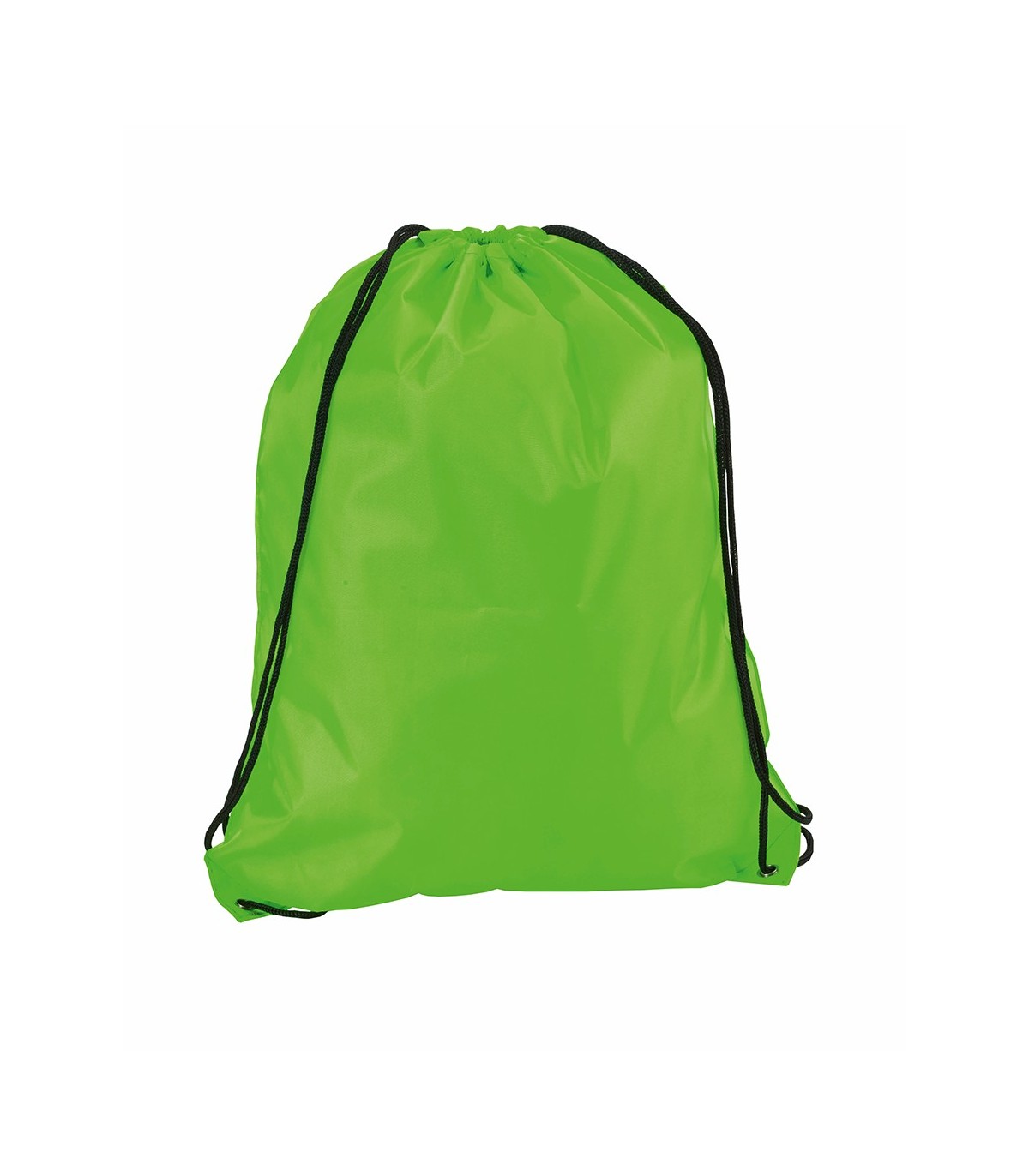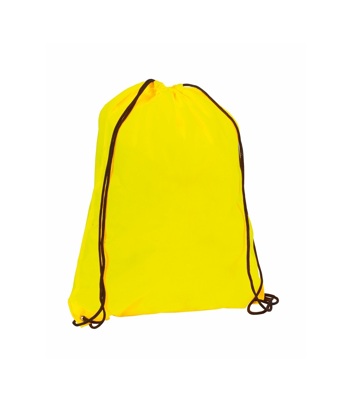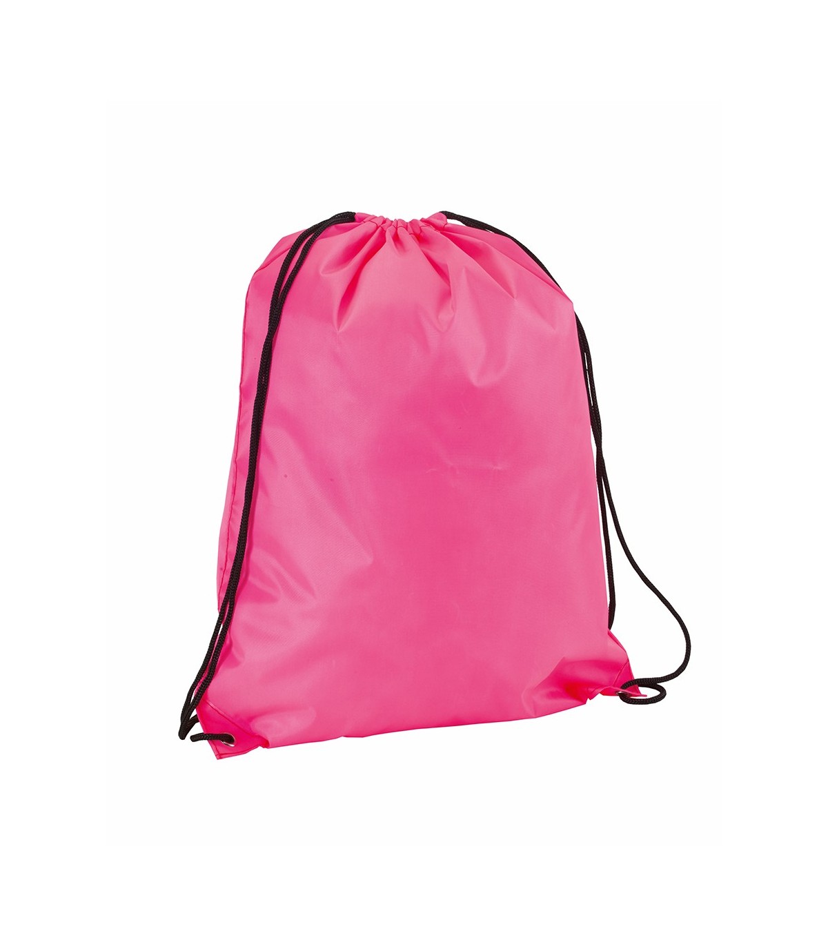 Mochila de cuerdas en suave poliéster 210T de vivos colores fluorescentes y extensa gama de colores. Con cuerdas autocierre en color negro y esquinas con argollas metálicas y refuerzos a juego.