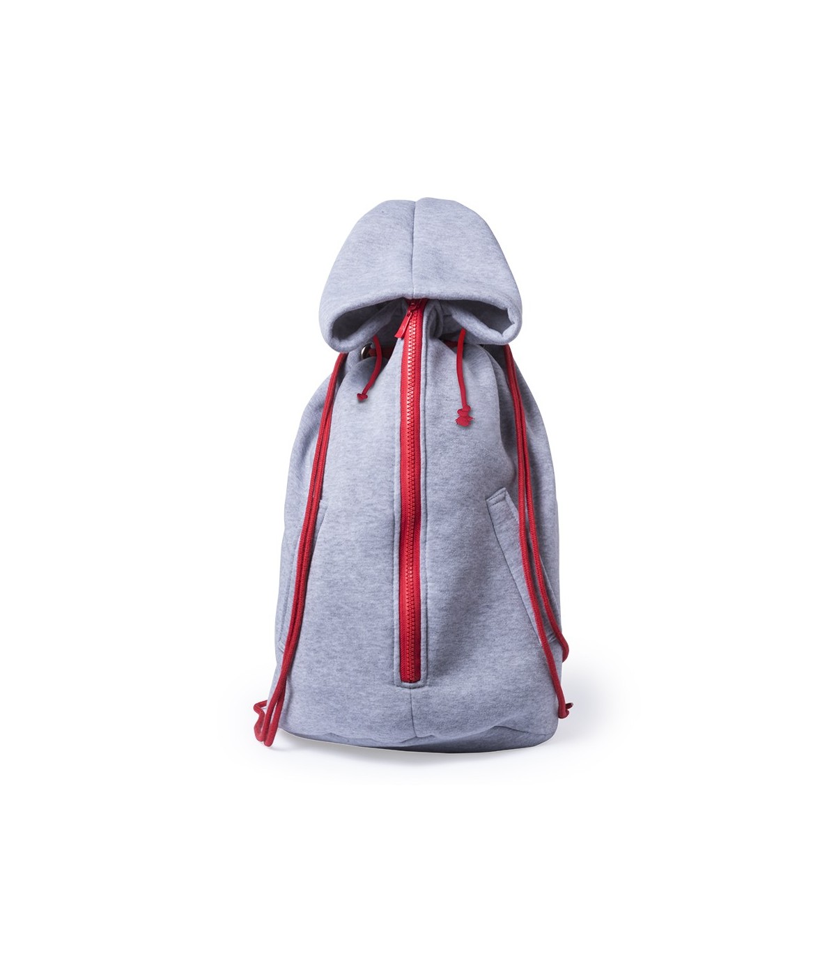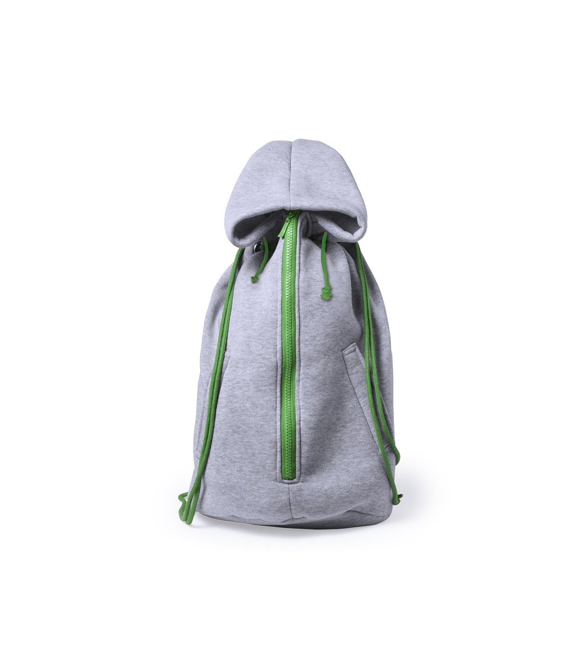 Mochila de cuerdas diseño capuchón en algodón y poliéster. Detalles a juego, con bolsillos frontales y doble sistema de cierre: de cordón en parte superior con argollas de refuerzo y de cremallera en parte frontal.