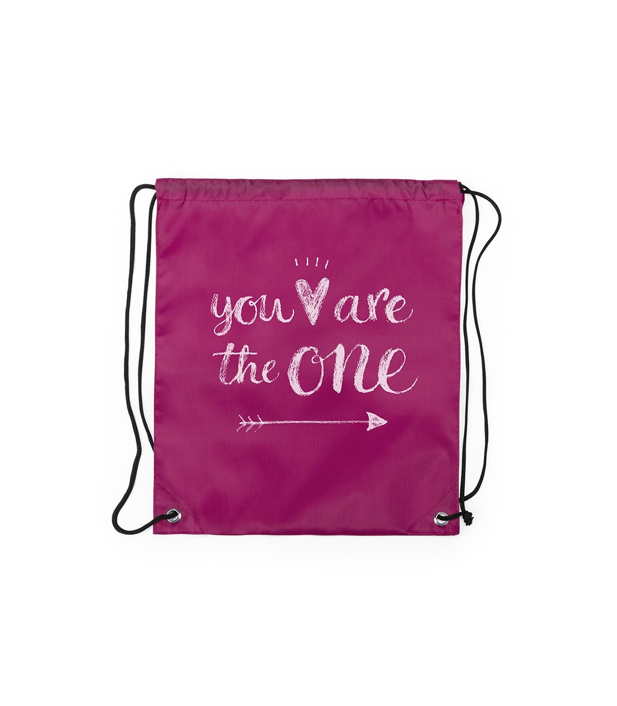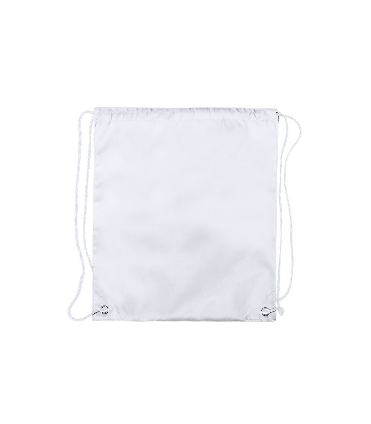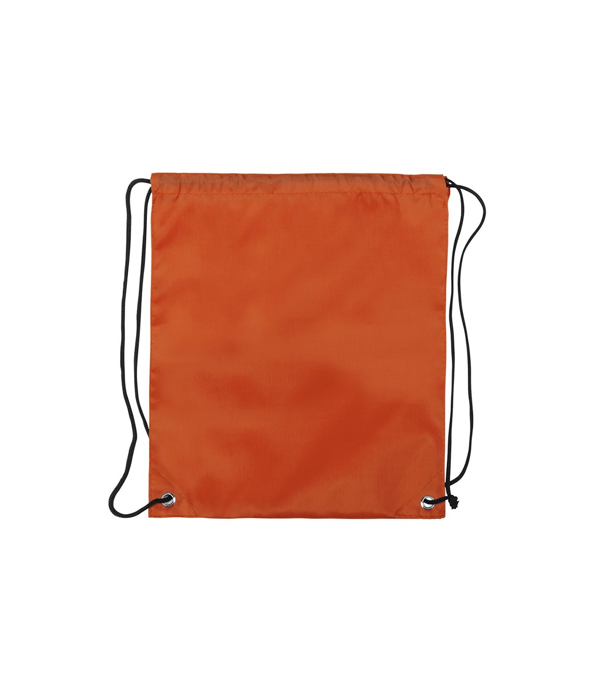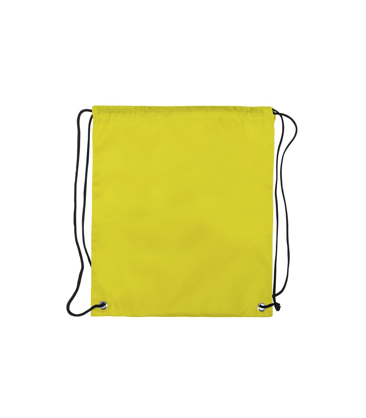 Mochila de cuerdas para niño en suave poliéster 210D de vivos colores. Con cuerdas autocierre en color negro y esquinas con argollas metálicas de refuerzo.