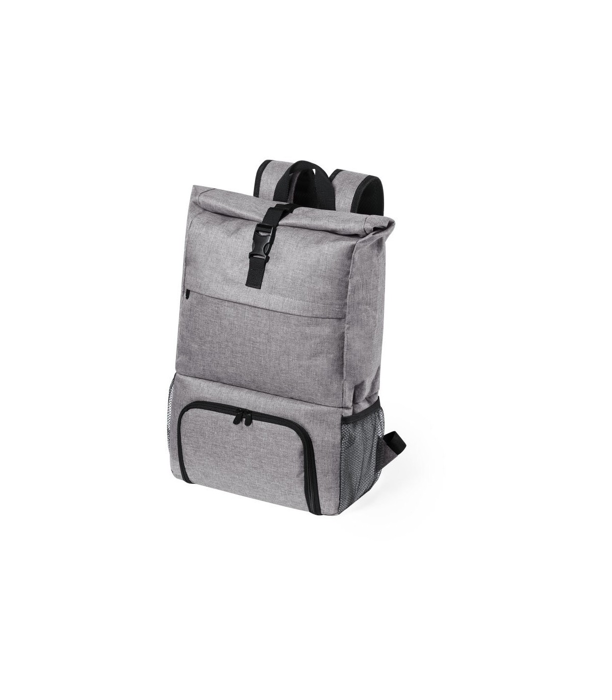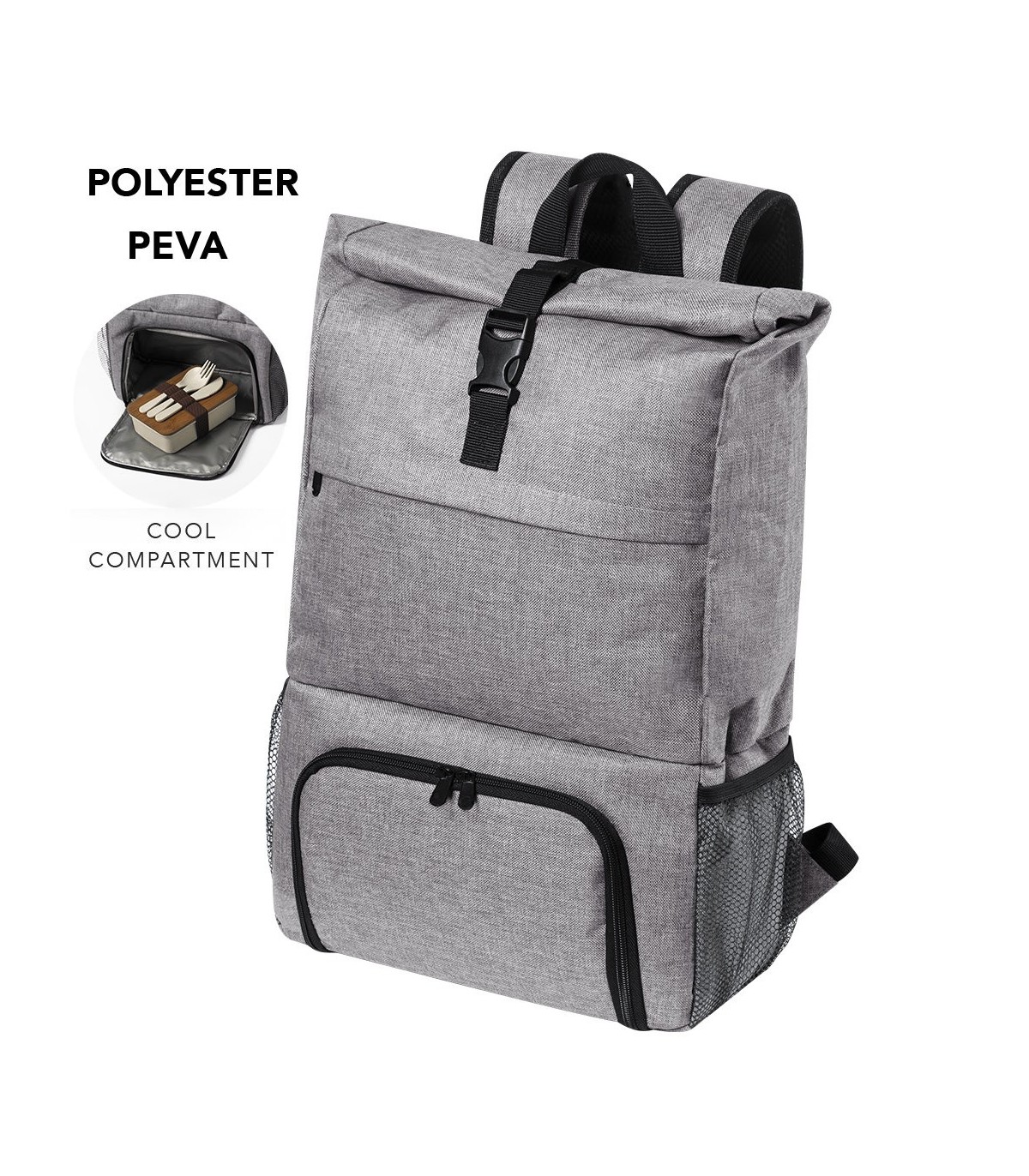 Mochila multiusos de diseño urbano, incluye compartimento estanco isotérmico para fiambrera. Compartimento principal con cierre de seguridad de hebilla y bolsillos laterales de redecilla.