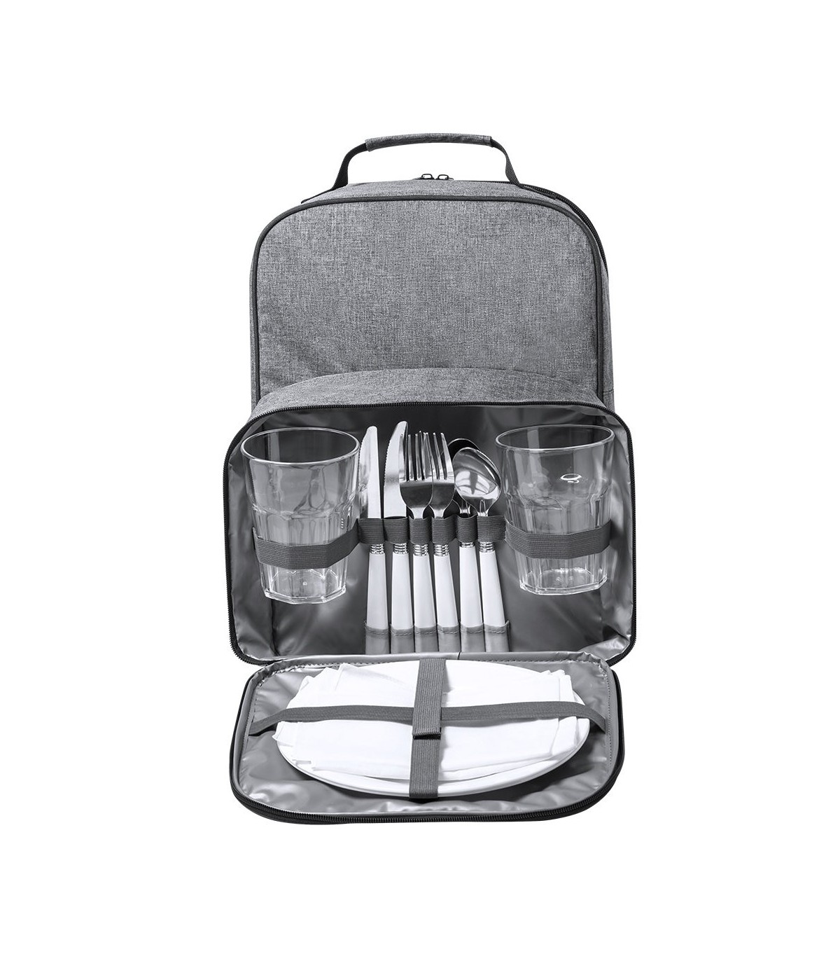Mochila nevera para picnic Ideal para 2 personas, Incluye 2 vasos, 2 cuchillos, 2 cucharas, 2 tenedores, 2 platos y 2 servilletas. Cintas y parte trasera acolchadas.