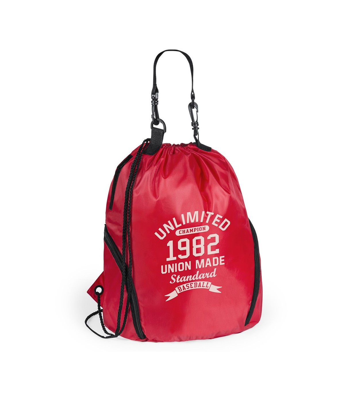 Mochilas deportivas ideal para llevar al gimnasio, fabricadas en poliéster con cuerdas y mosquetón, personalizadas para regalos de empresa promocionales.