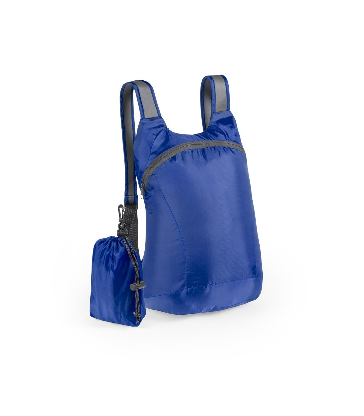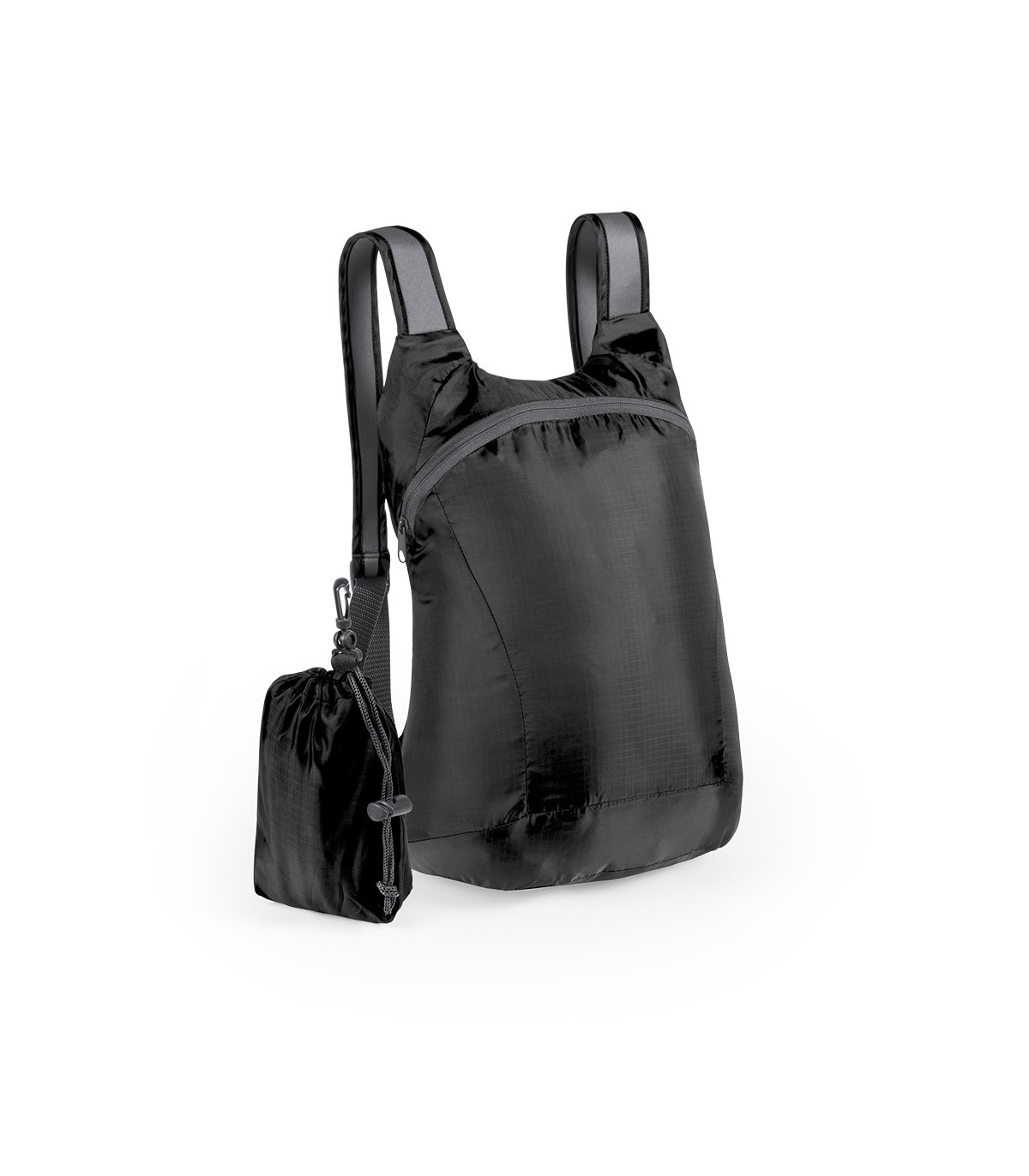 Mochilas plegables publicitarias promocionales para regalos de empresa personalizadas con logo. Fabricadas en Ripstop con las asas reflectivas ideal para regalos deportivos.