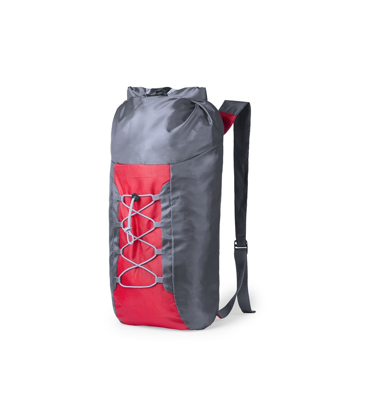 Mochila plegable técnica en resistente combinación de poliéster 210D y ripstop, con una atractiva combinación de colores. Con cierre buckle en compartimento principal, cordones elásticos y cintas de hombros ajustables, con plegado de pequeño tamaño.