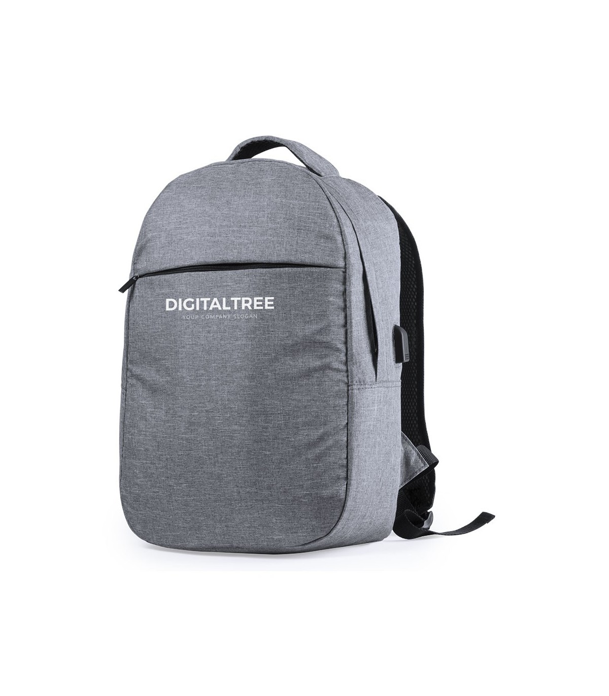 Mochila de seguridad, con diseño urbano en resistente poliéster 300D. Bolsillo interior con protección de seguridad RFID (Identificación por Radio Frecuencia) que mantiene seguros los datos de la tarjeta y demás dispositivos. Compartimento principal con elegante tapeta en la cremallera. Con conexión USB -powerbank no incluido- y bolsillo interior acolchado para ordenador portátil de hasta 15 pulgadas. Parte trasera y cintas acolchadas.