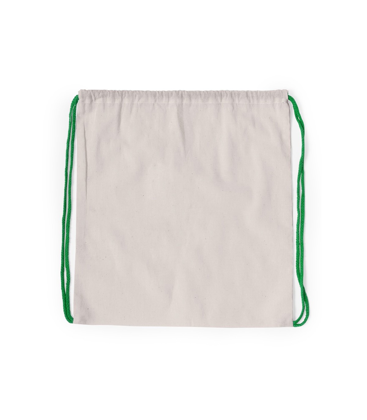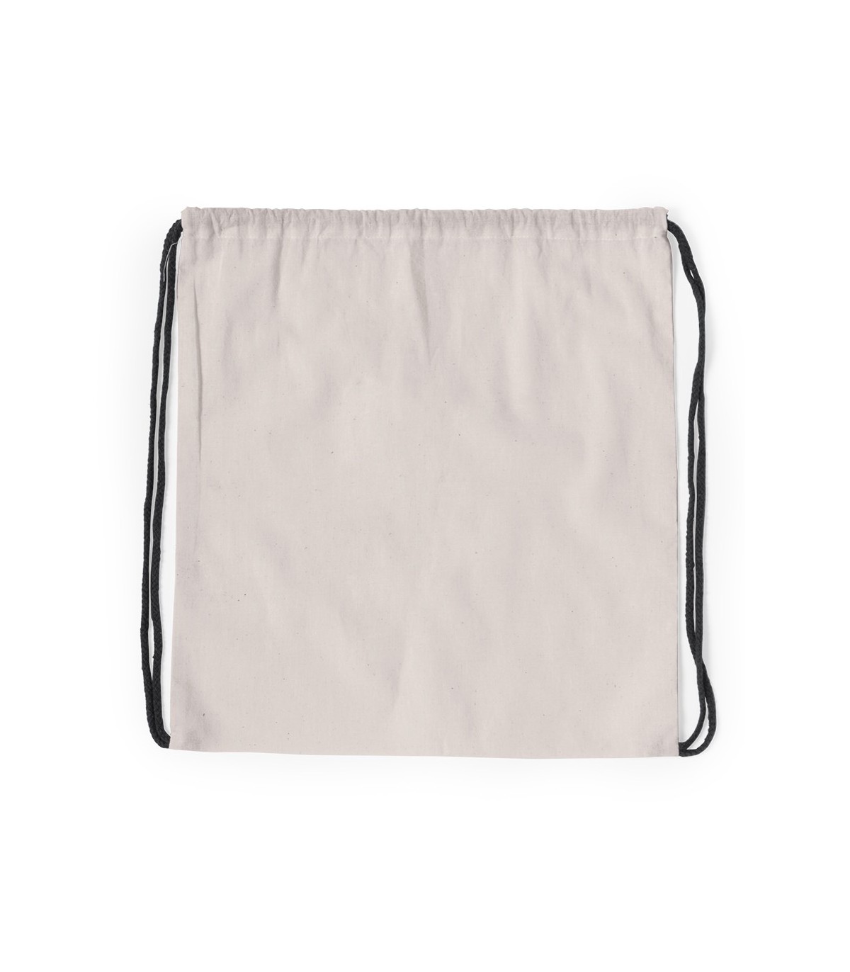 Mochila de cuerdas fabricada en algodón 100% de 120 g/m². Cuerpo en color crudo natural y cordones trenzados en variada gama de colores. Esquinas reforzadas.