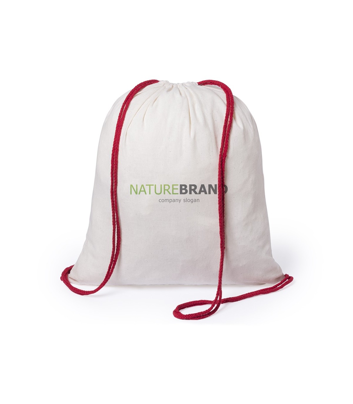 Mochila de cuerdas en línea ecológica fabricada en algodón 100% de 120g/m2. Cuerpo en color crudo natural y cordones trenzados en variada gama de colores. Esquinas reforzadas.