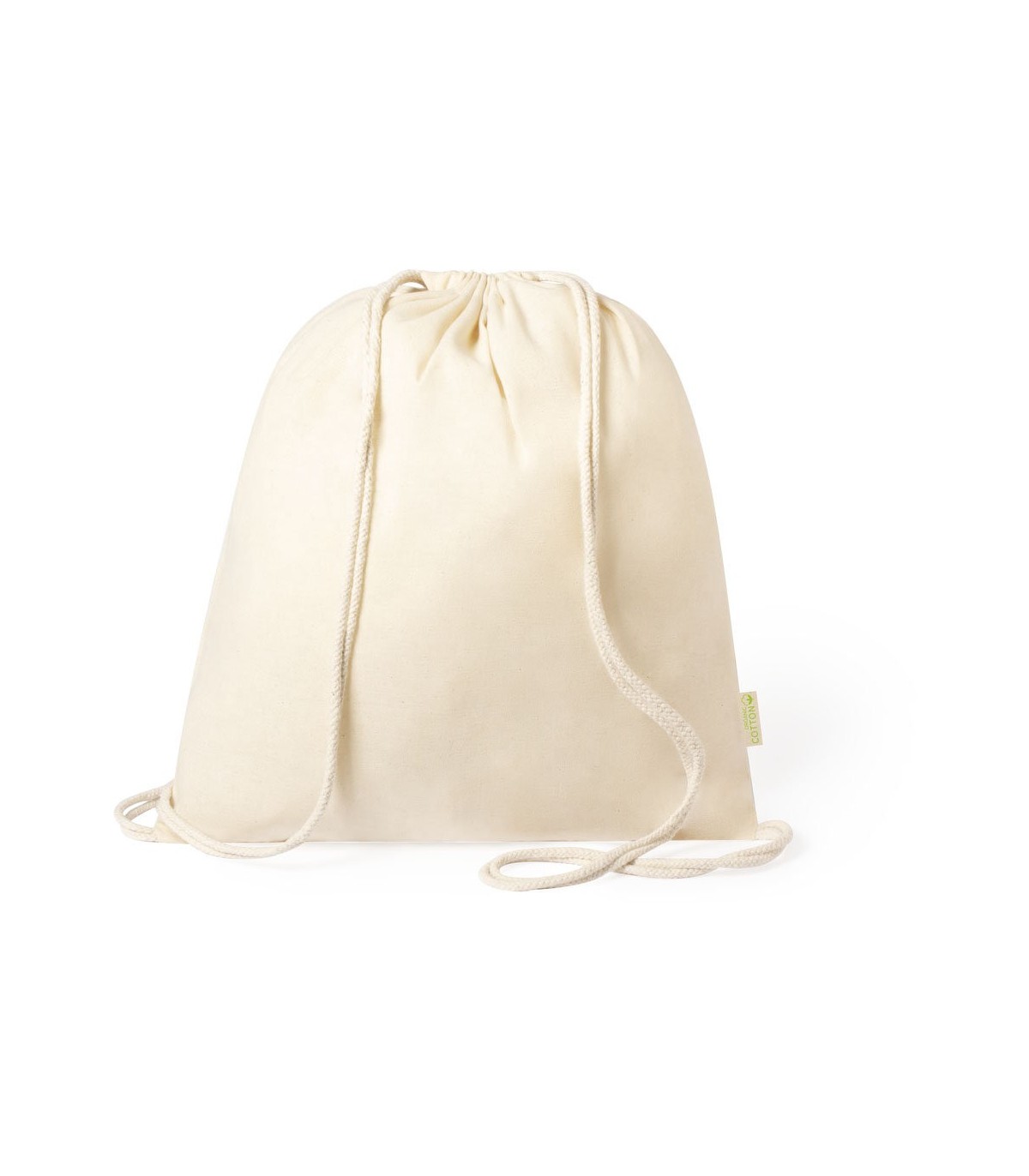 Mochilas personalizadas ecológicas en algodón orgánico ideales para regalos de empresa. Con cuerdas del mismo color y de Resistencia hasta 9kg de peso.