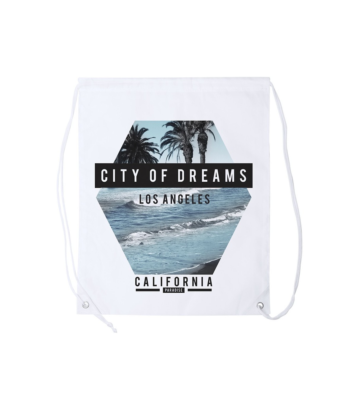 Mochila de cuerdas de suave poliéster 210T en extensa gama de colores. Con cuerdas autocierre en color negro, esquinas reforzadas en polipiel a juego con el color de la mochila y resistentes argollas metálicas. Color blanco especial para sublimación.