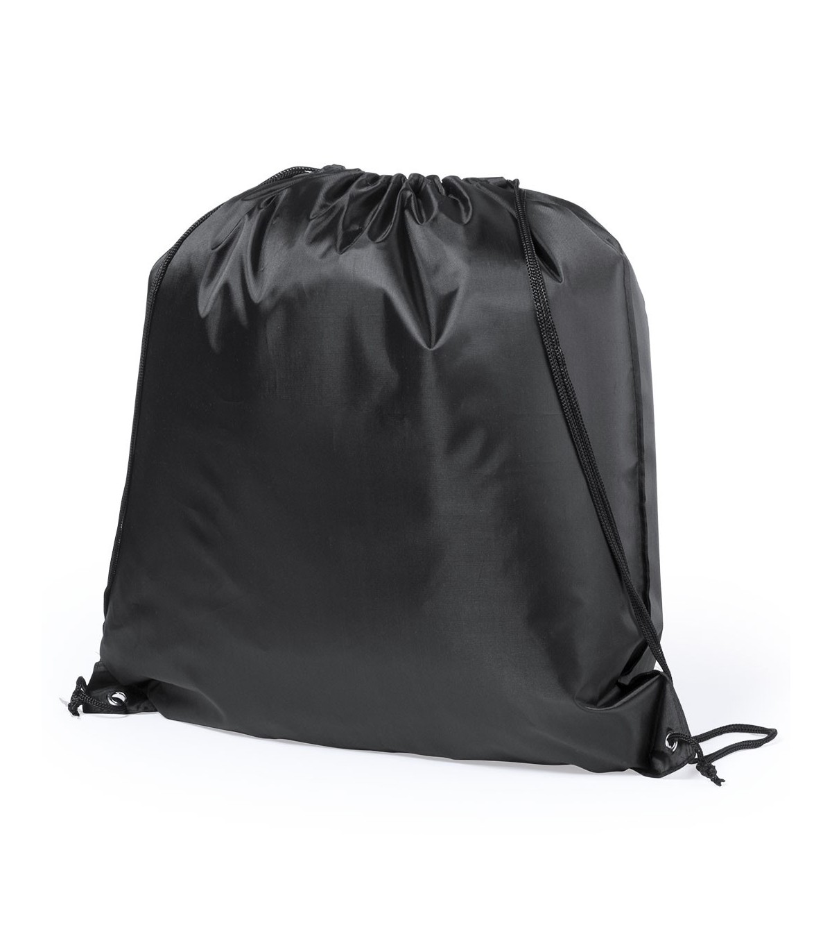 Mochila de cuerdas en suave poliéster 210D especialmente diseñada para cascos de motociclistas. Con cuerdas autocierre en color negro y esquinas con argollas metálicas y refuerzo de polipiel a juego.