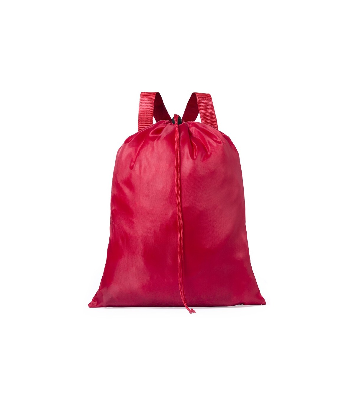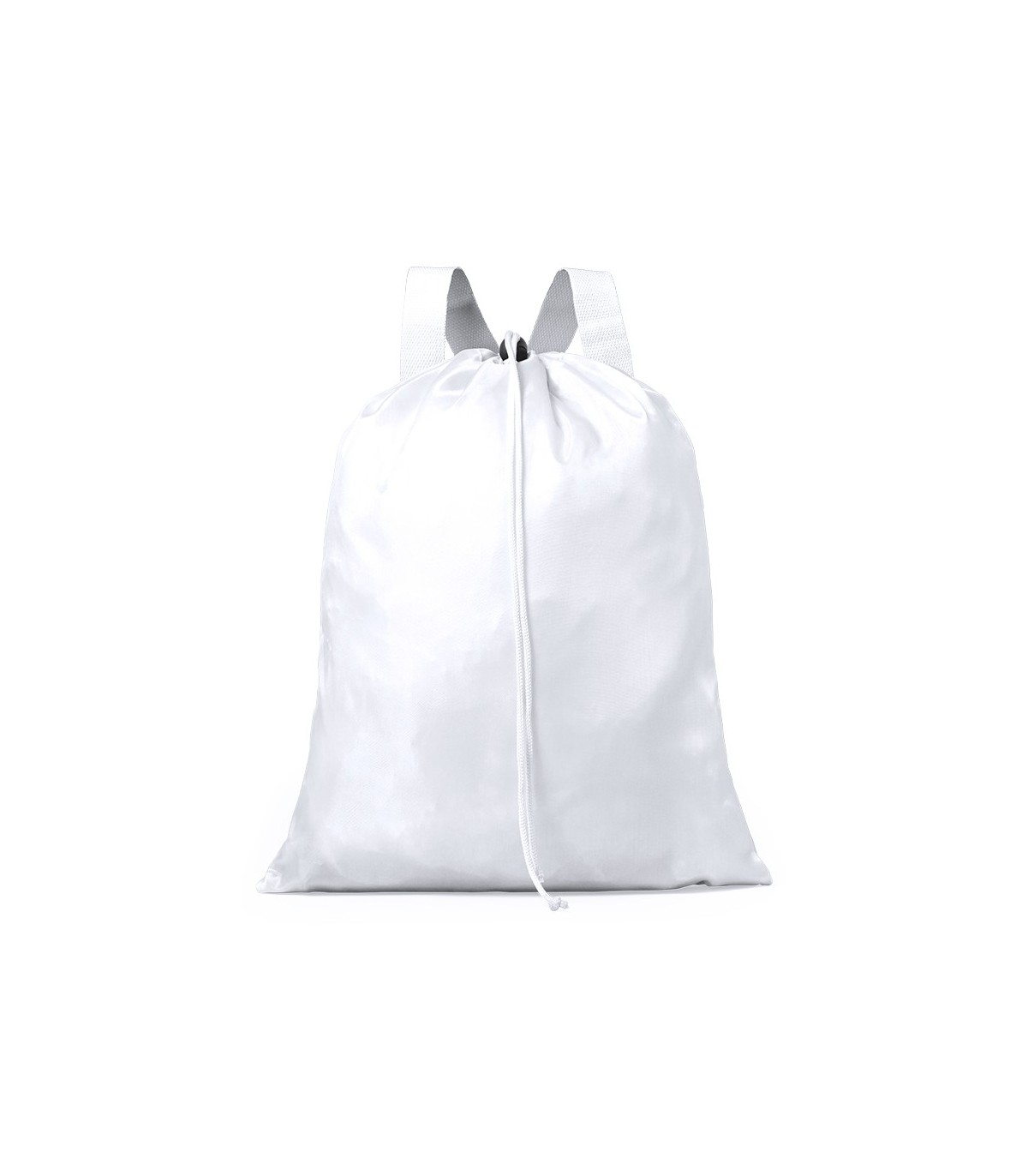 Originales mochilas de cordón en poliéster y varios colores para personalizar con logotipo de empresa como artículos promocionales, Con cintas para hombros ajustables y cierre de cordón a juego con accesorio de ajuste.