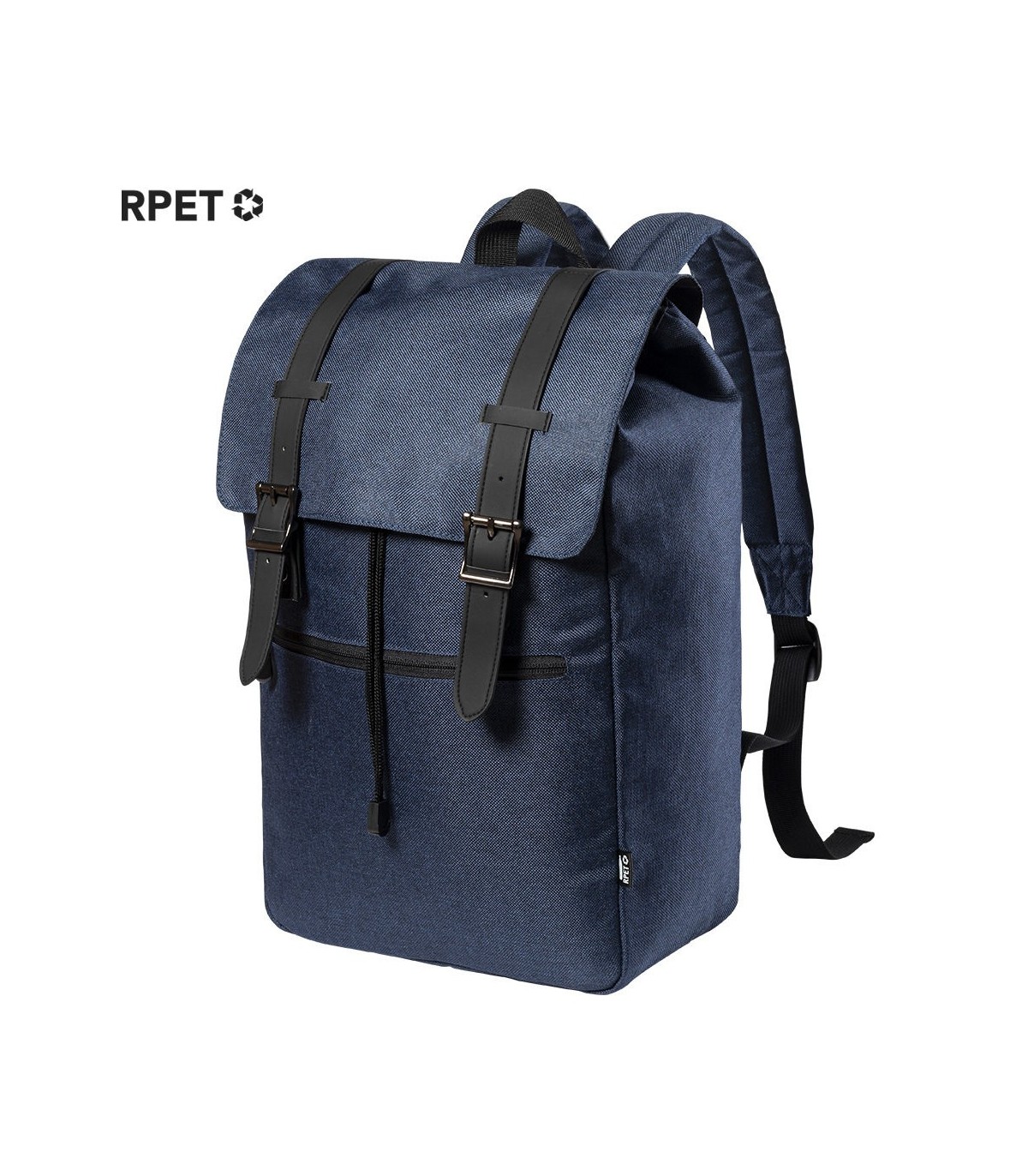 Mochila urban de fabricación ecológica, hecho en resistente poliéster 300D RPET libre de PVC, elaborado a partir de plástico reciclado, para promover su reutilización y así disminuir la emisión de agentes contaminantes en nuestro planeta. Bolsillo principal con tiras y cierres de hebilla metálicos; con bolsillo frontal de cremallera y tirador metálico. Interior con bolsillo acolchado para portátil de hasta 15 pulgadas y tablet de hasta 10 pulgadas. Cintas ajustables para hombro acolchadas, con distintivo RPET en etiqueta exterior.