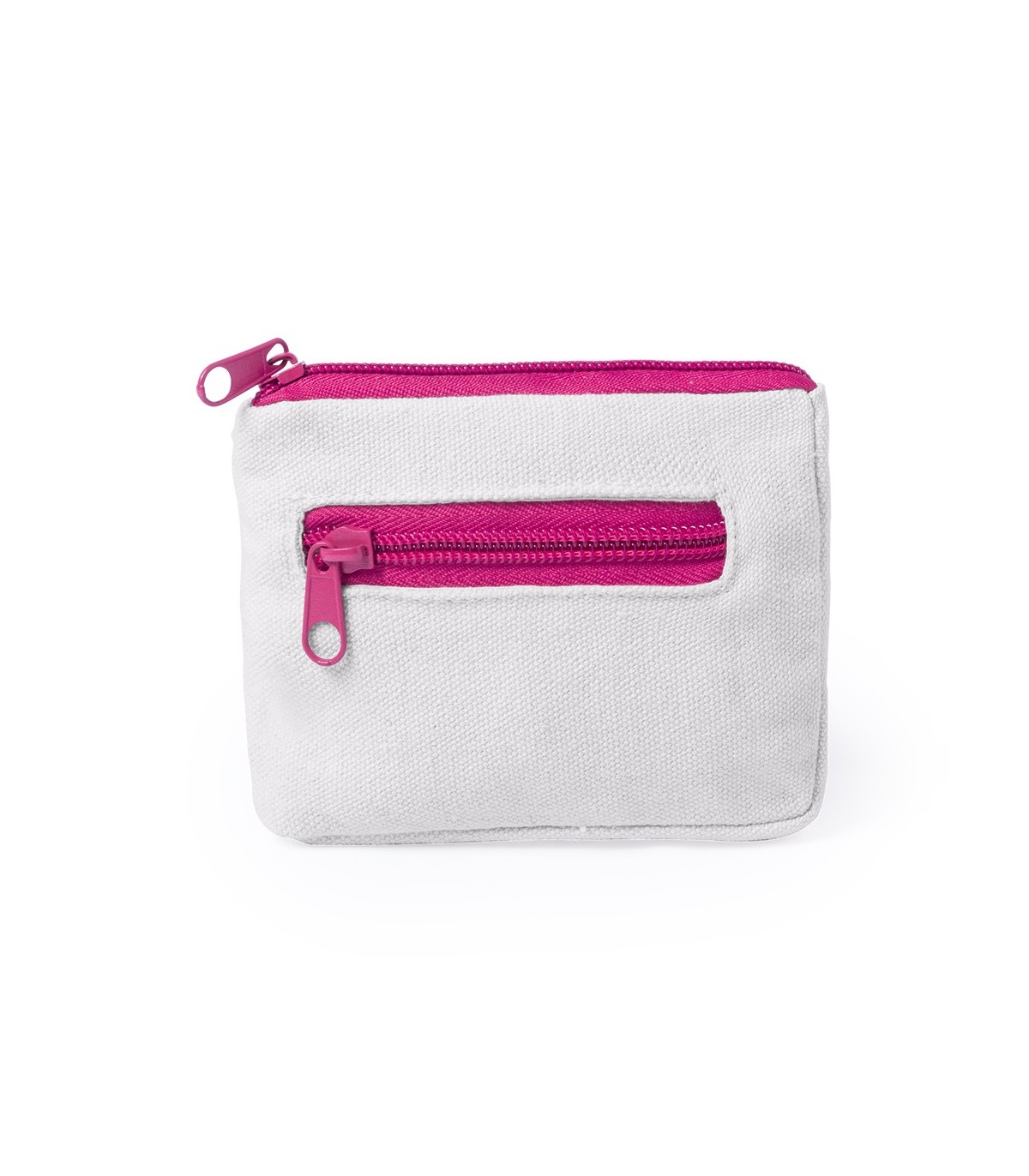 Monederos bicolor en material 100% algodón. Con cuerpo blanco y cremalleras en llamativos colores para personalizar como regalos de merchandising para empresas.