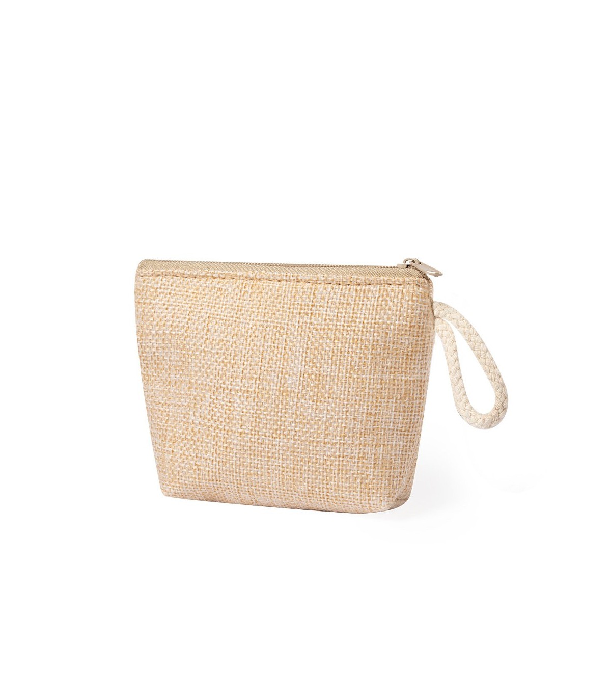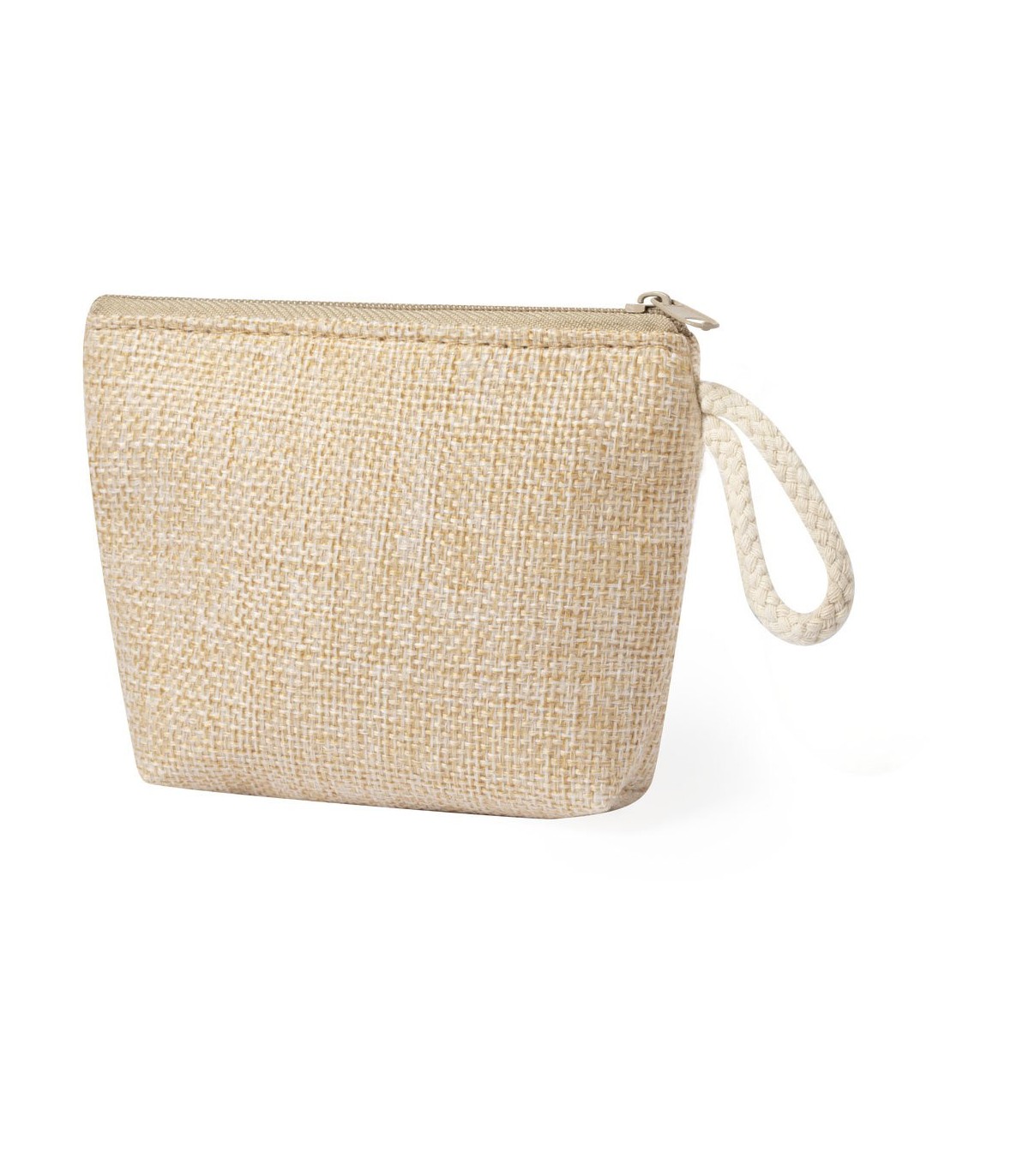 Monedero en algodón/poliéster, con asa a juego y cierre de cremallera.