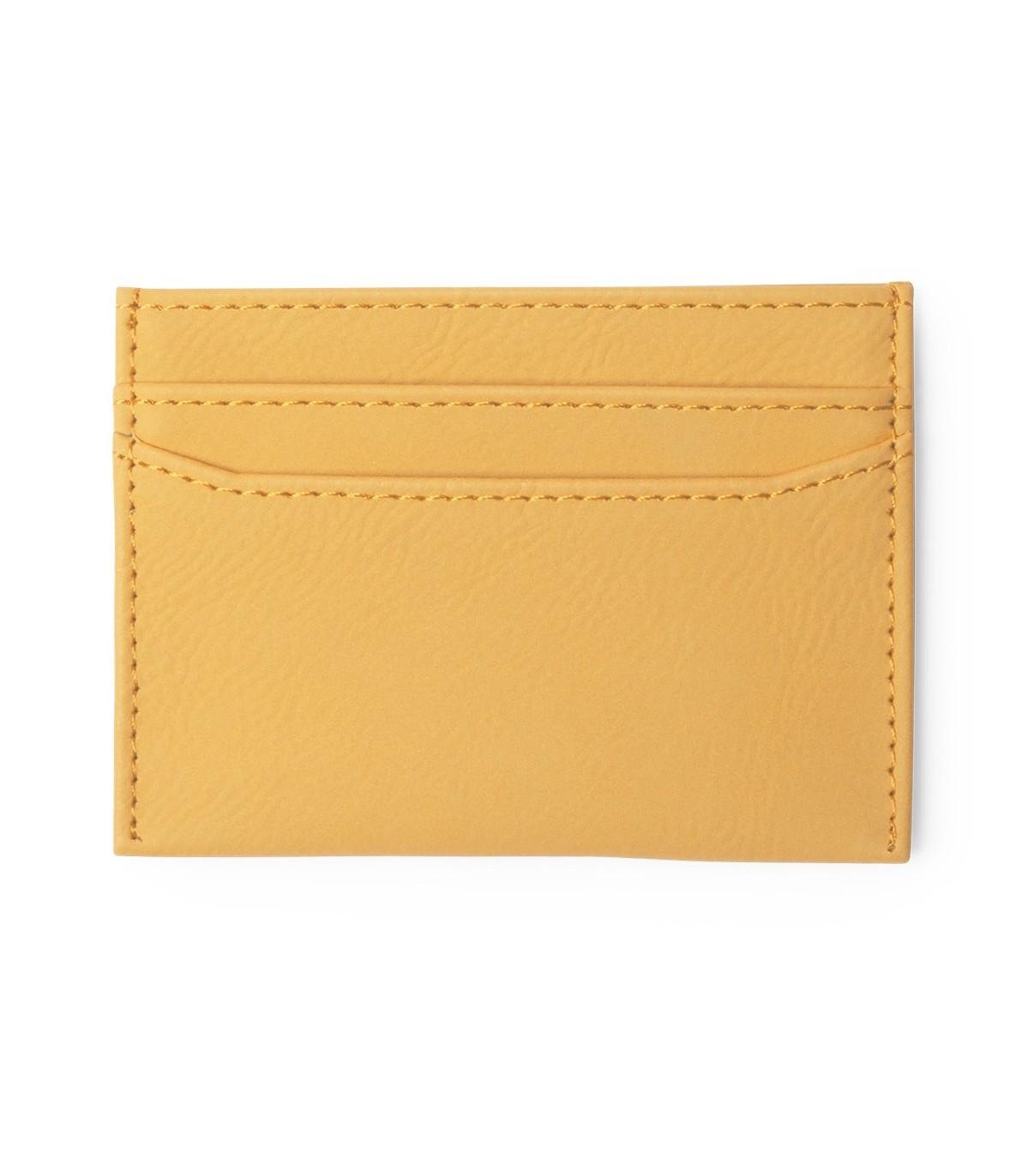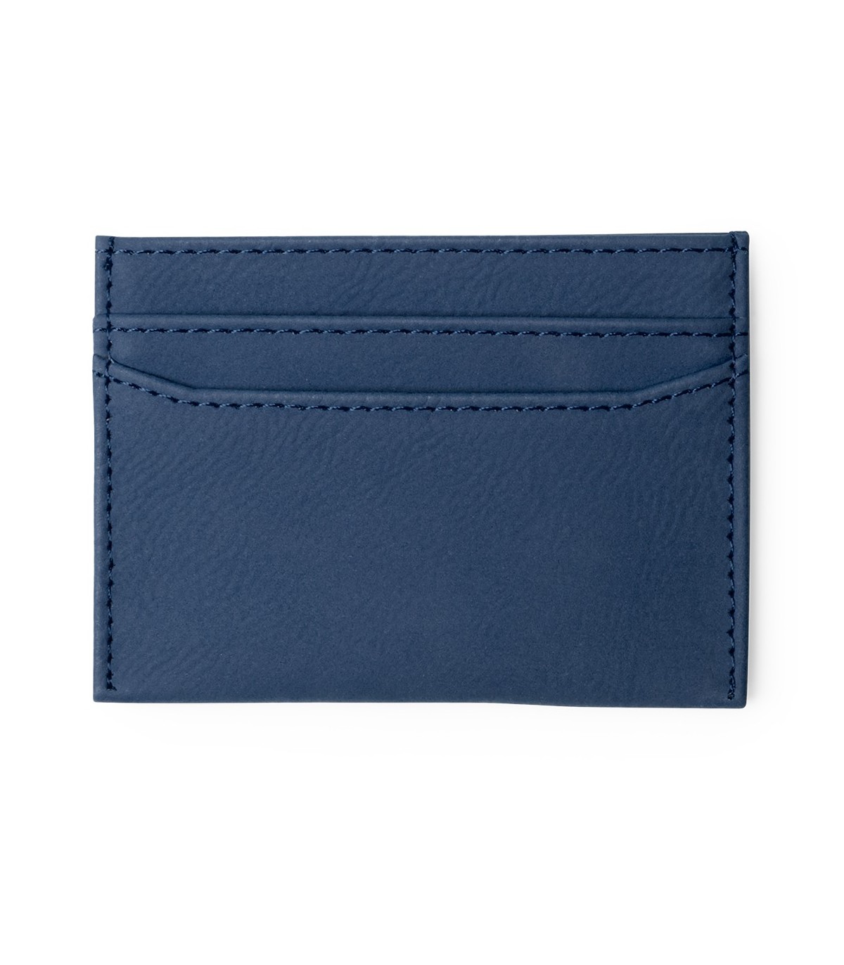 Monedero tarjetero de polipiel con 4 compartimiento, uno para billetero en parte central y 3 compartimentos para tarjetas de crédito, serigrafiados con logo.