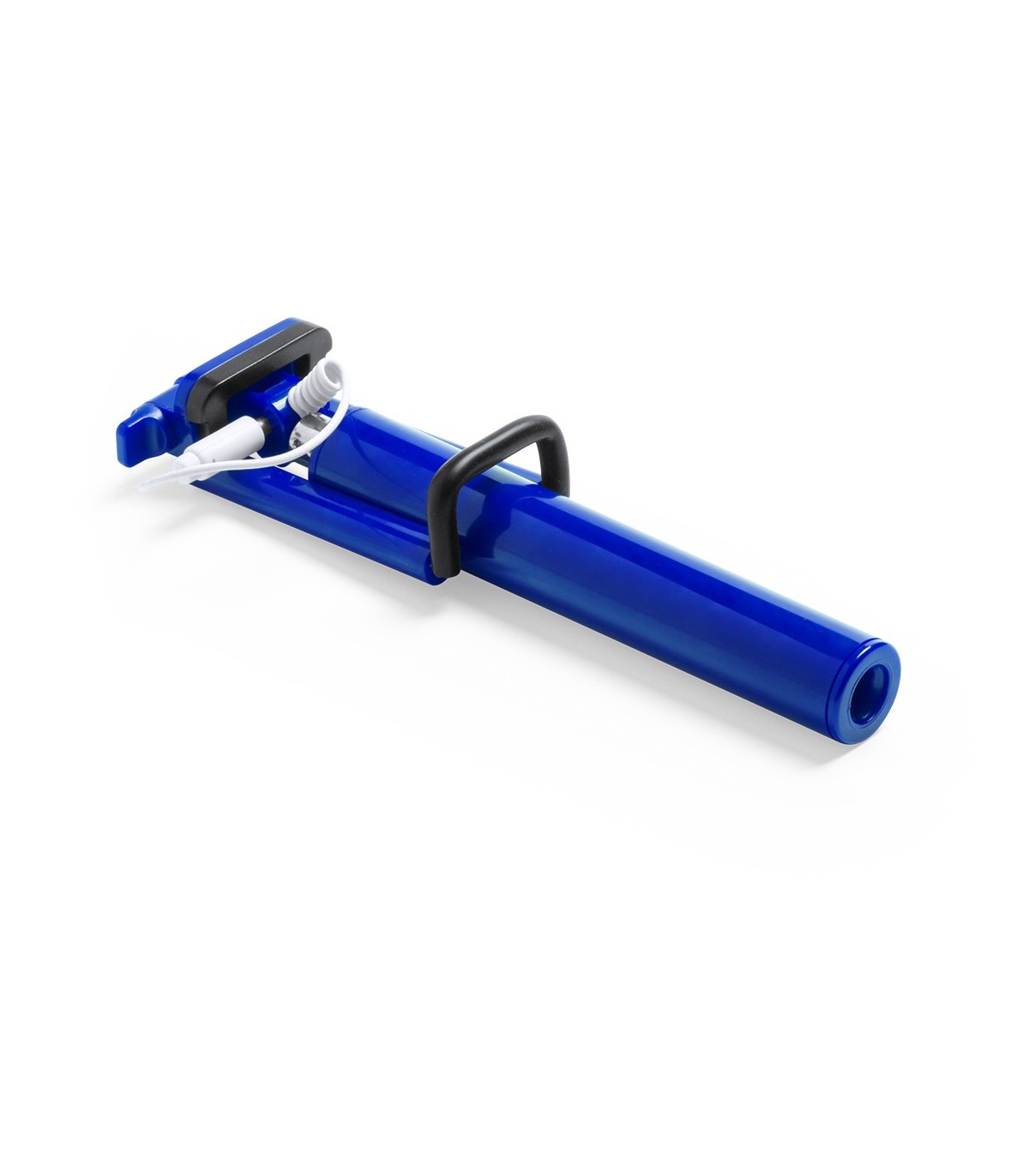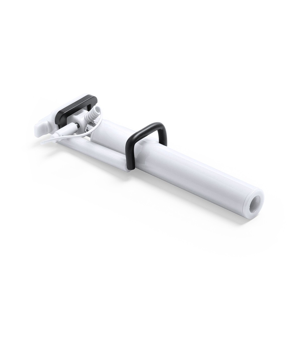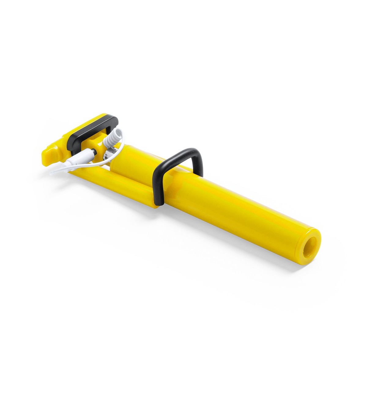 Divertido palo selfie plegable en diseño bicolor con conexión jack de 3,5mm, sistema antigiro y disparador integrado en mango. Recorrido de acero inox y sistema de almohadillas en el soporte para así ofrecer un óptimo ajuste y protección del smartphone, además de una tuerca de ajuste a fijar según la inclinación que se desee, para así hacerse selfies todavía más variados y divertidos. Compatible con todo tipo de smartphones y especialmente diseñado para marcaje en tampografía, con accesorios a juego y presentado en atractiva caja de diseño.