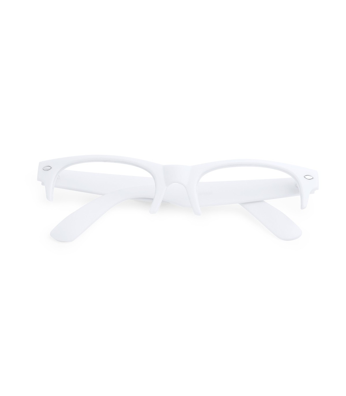 Montura de gafas de clásico diseño en color blanco de acabado brillante. Con troquelado especial para combinación con lentes disponibles (se venden por separado).