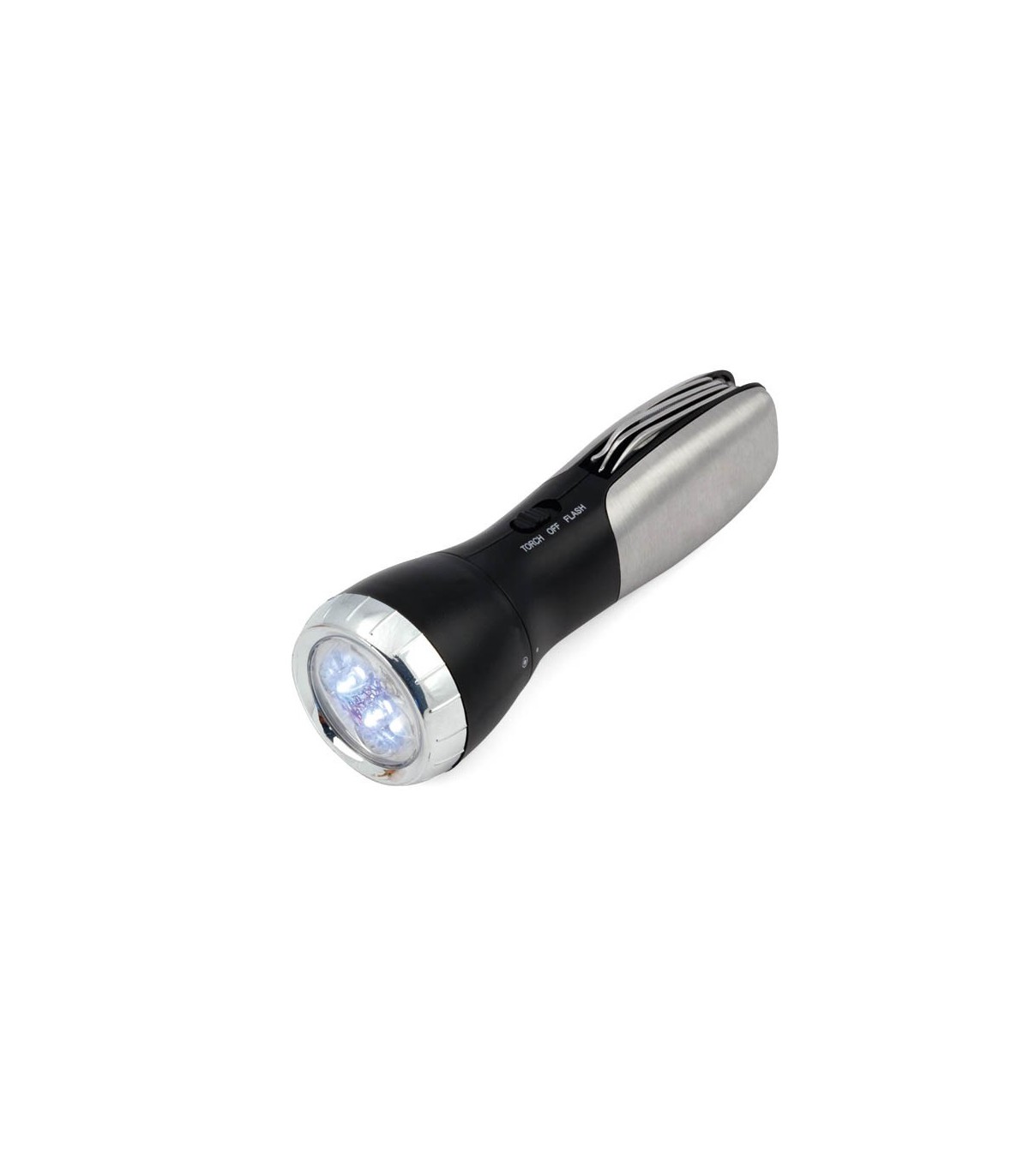 Multiherramienta con resistente de acabado anti deslizante en color metalizado. Con 12 funciones y linterna de 4 ledes integrada. Incluye cabezales destornilladores, navajas, llaves, tijeras y abridores. Presentada en caja individual. Pila 1xAAA no incluida.