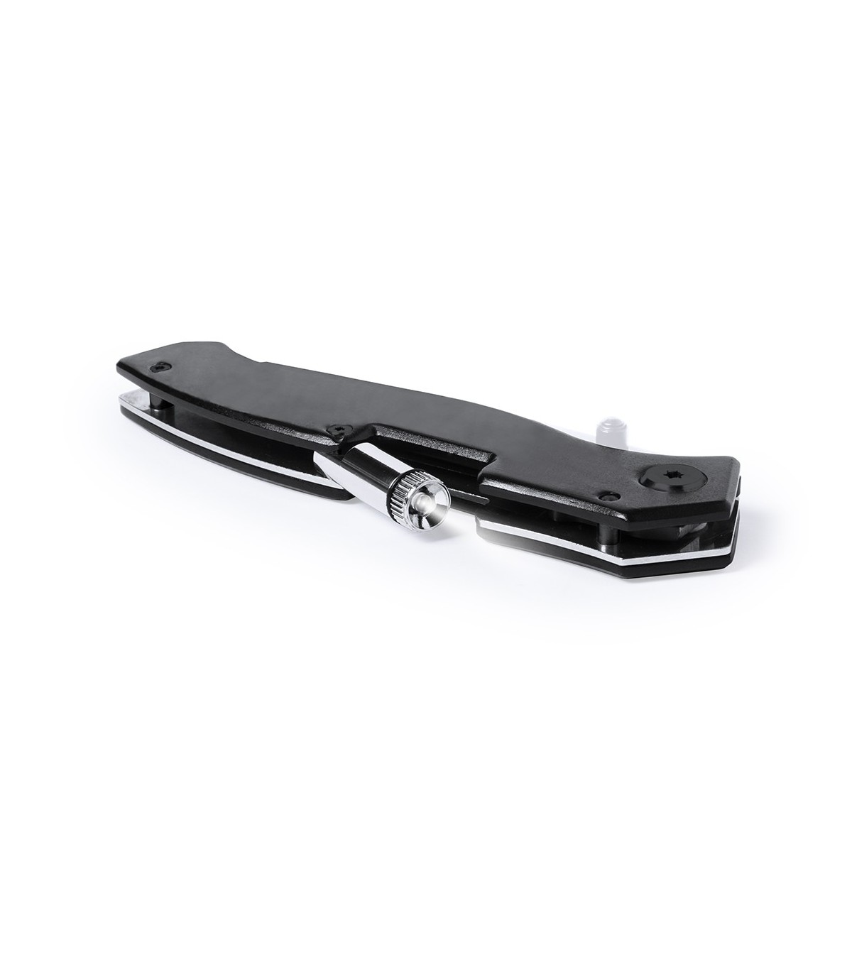 Navaja de Orizons de acero inox y resistente empuñadura anti deslizante con bloqueo de seguridad. Con linterna led y troquelado en mango. Pilas de botón incluidas y presentada en caja individual con logotipo de la marca.