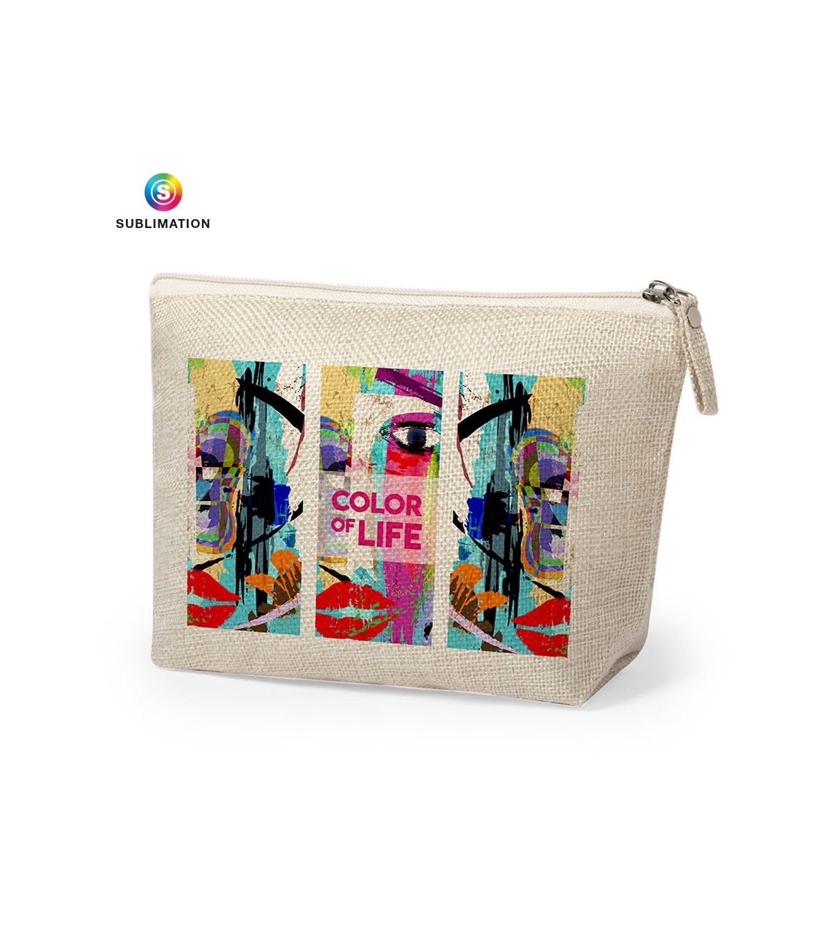 Neceser de inspiración nature, en resistente poliéster de suave tacto, especialmente elaborado para impresión en sublimación. Con cierre de cremallera y cinta en tirador para cómoda apertura.