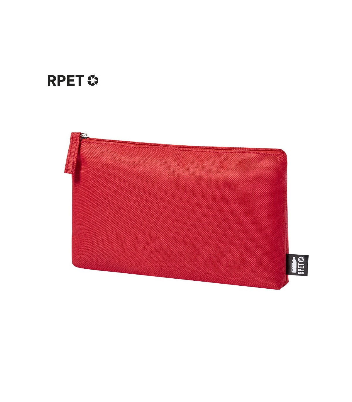 Neceseres de viaje hechos en plástico reciclado. Con cierre de cremallera y tirador a juego. Disponible en variada gama de colores, con distintivo RPET en etiqueta exterior.