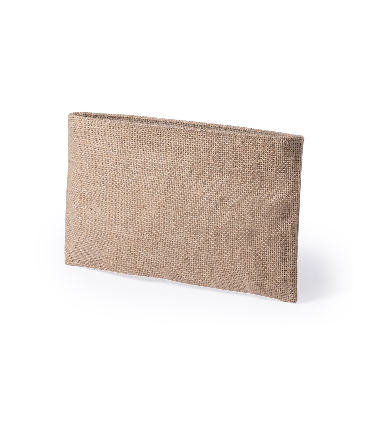 Neceseres de viajes y hogar personalizados en serigrafia ideales para regalos de empresa publicitarios, fabricados en yute natural con cierre.