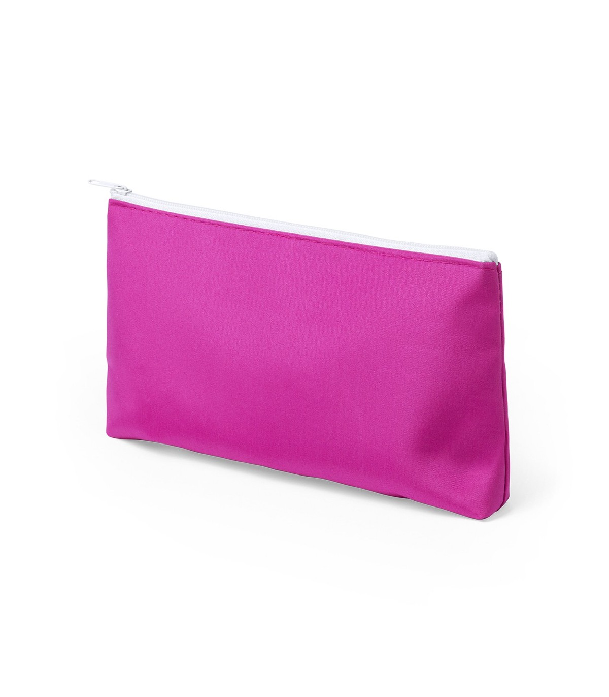 Delicado neceser fabricado en suave microfibra en varios colores y cierre de cremallera en color blanco, ideales para regalos publicitarios de empresa.
