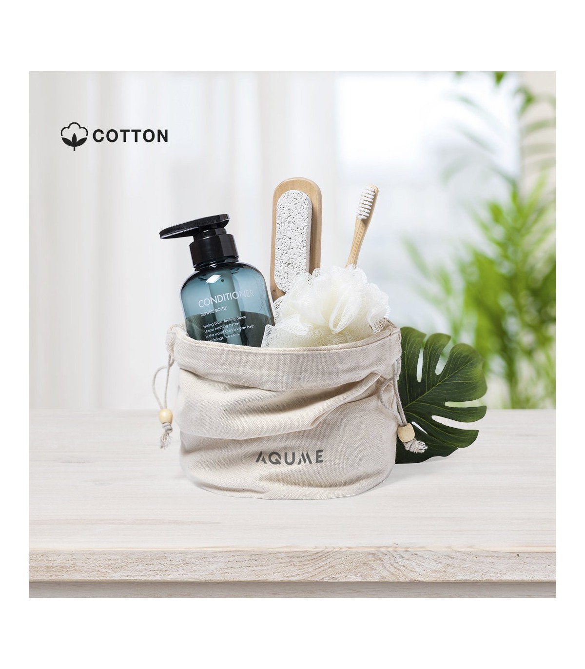 Neceser multiusos de línea nature con original diseño y en material 100% algodón de 230g/m2. Cierre de cordón con tiradores estilo madera. Accesorios no incluidos.