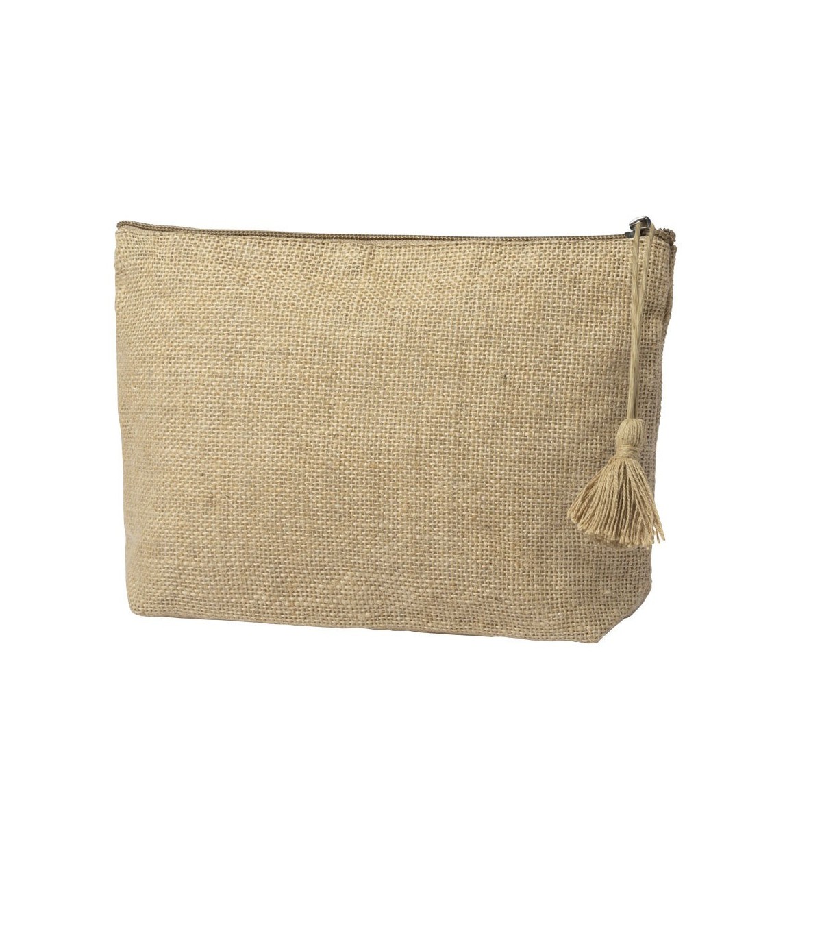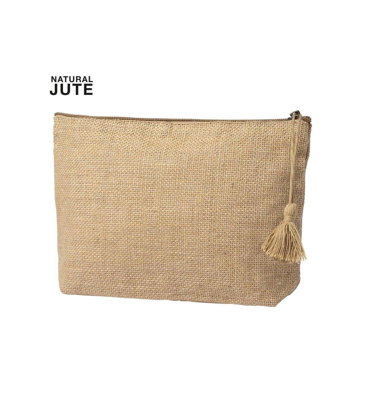 Neceseres originales de fabricación ecológica en yute laminado, con cierre de cremallera y tirador súper cuqui en algodón.
