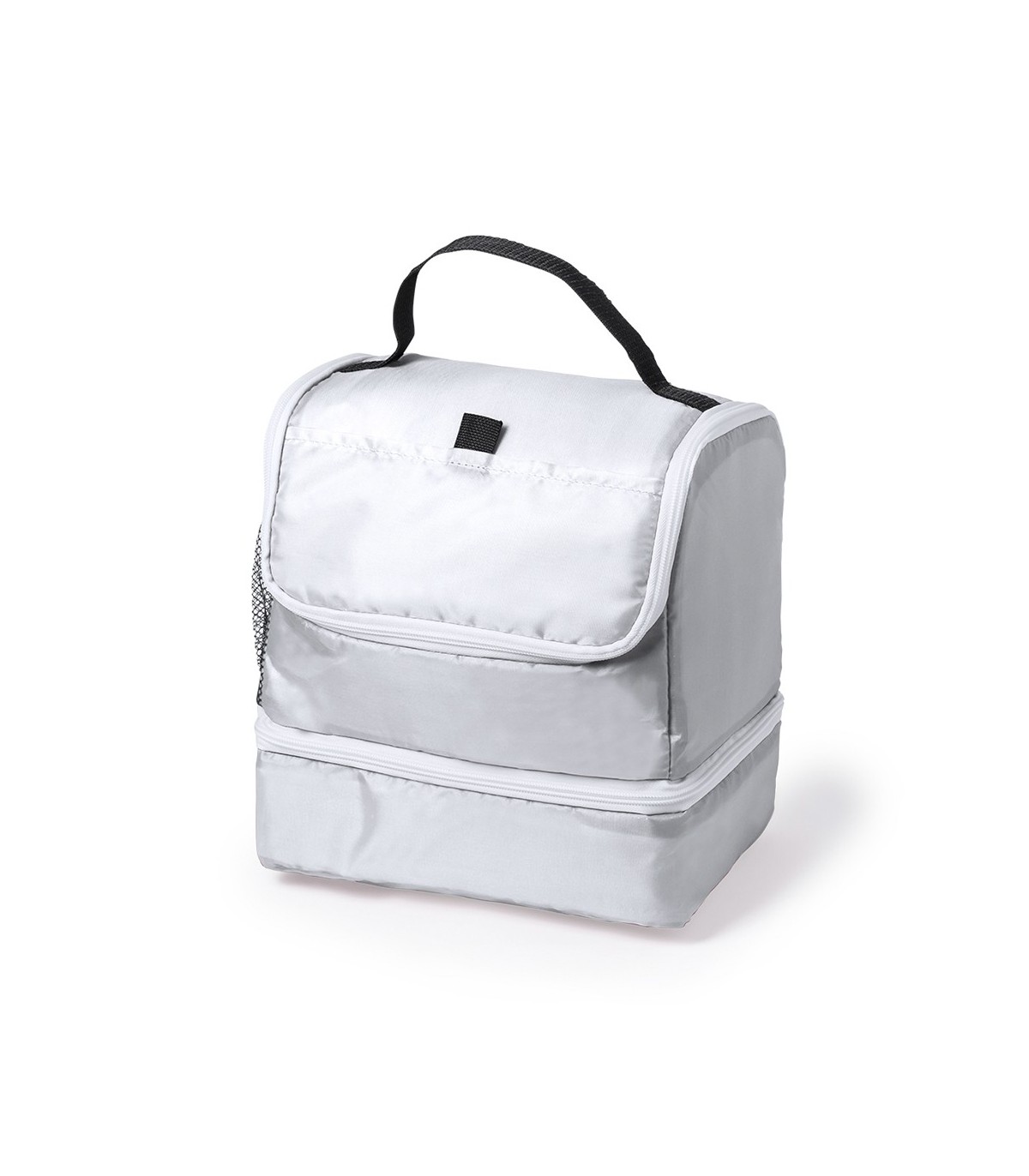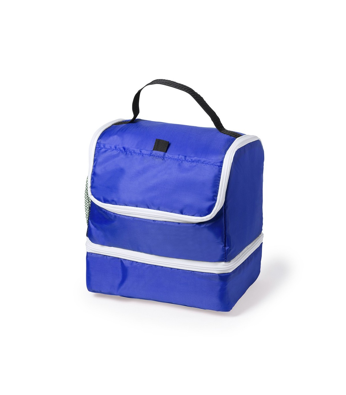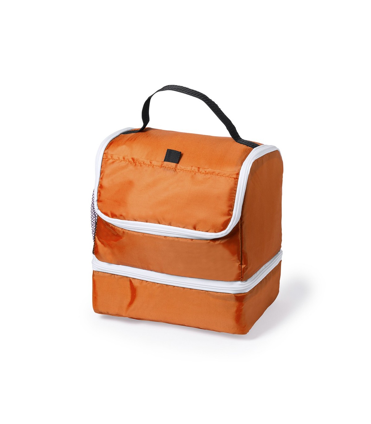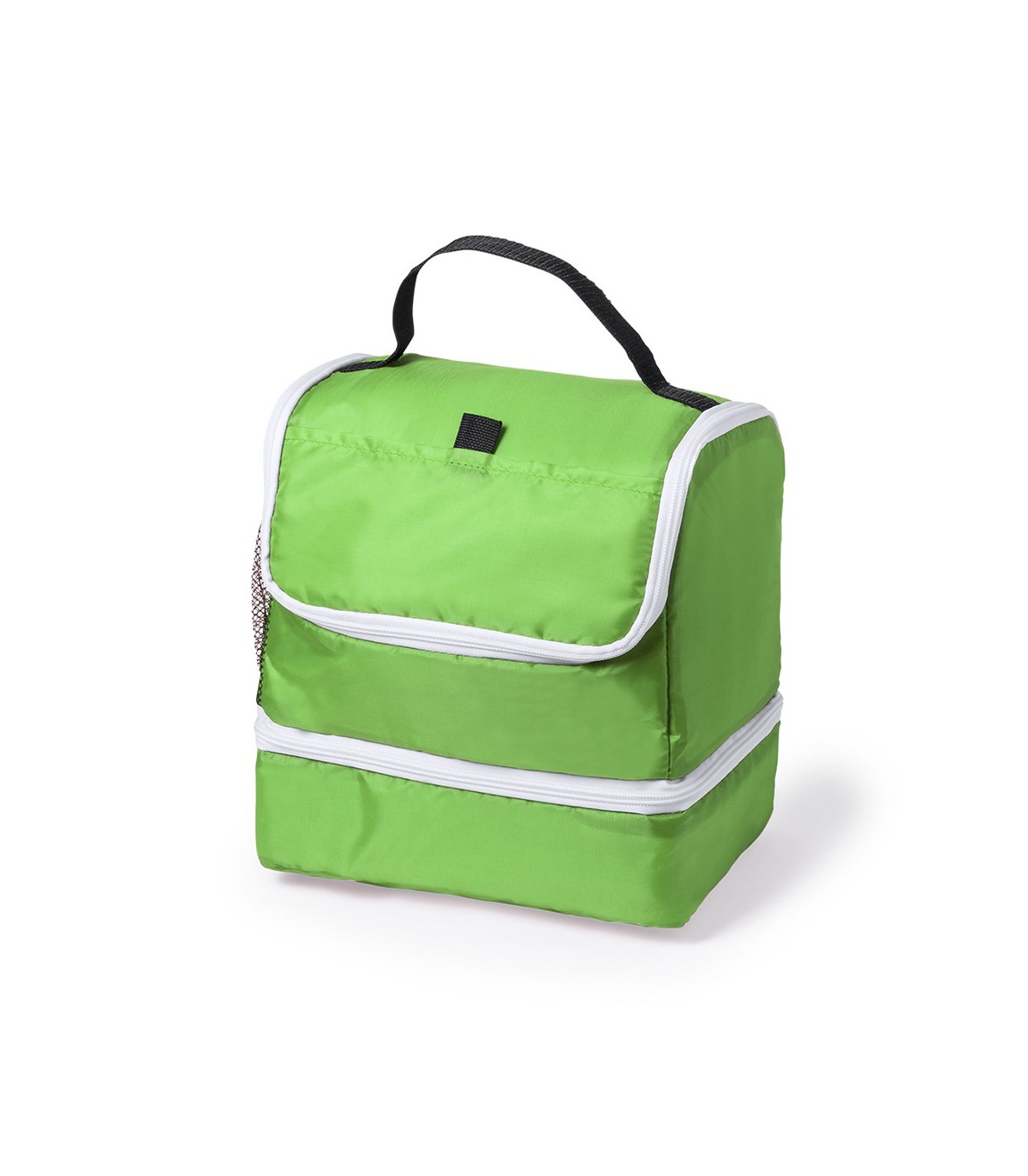 Nevera todoterreno en poliéster 210D de vivos colores y con dos compartimentos independientes con cierre de cremallera. Con bolsillo frontal de cierre de velcro y bolsillo de redecilla elástica en lateral. Interior isotermo en acabado PEVA. Con práctica asa de transporte en resistente nylon.