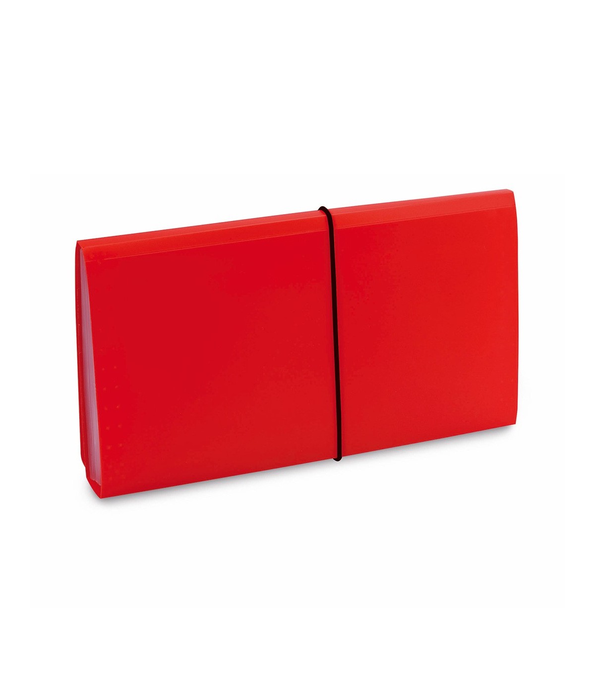 Carpeta organizador de ingenioso cierre de elástico, en resistente material y variados colores. Interior con 12 separadores de acabado translúcido con pestaña de identificación superior.