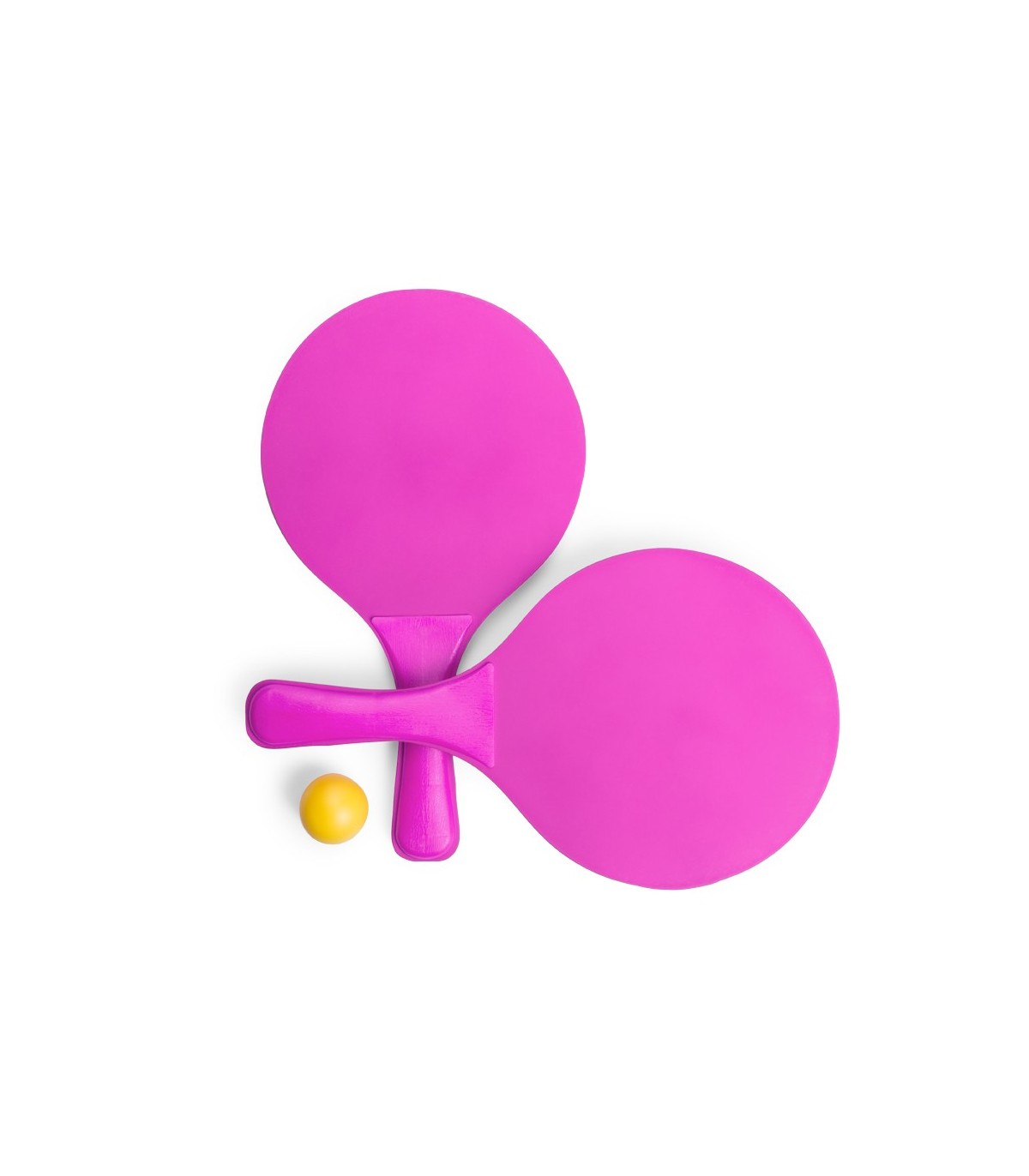 Par de palas de playa de alta calidad en madera natural de variada gama en diferentes colores muy originales y llamativos. Con mango reforzado a juego y presentadas en bolsa redecilla con pelota.
