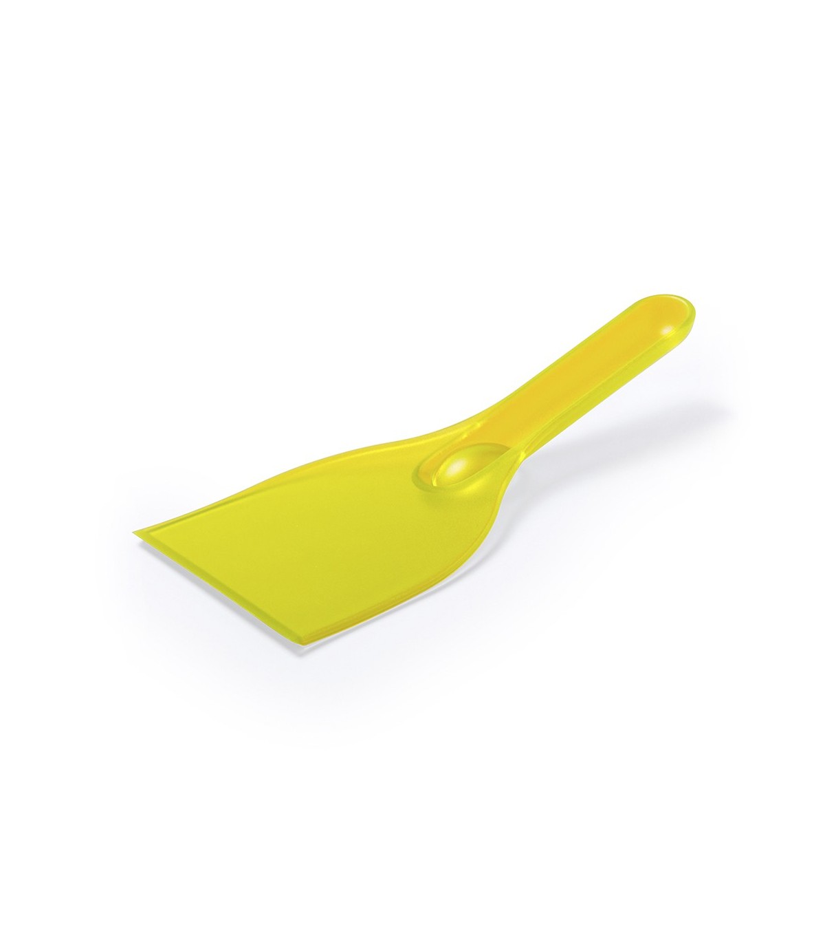 Rascador de hielo en resistente material de vivos de colores. Con cómoda asa y paleta de gran tamaño para regalos de empresa personalizados.